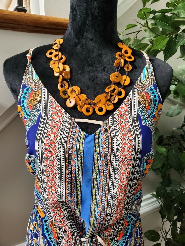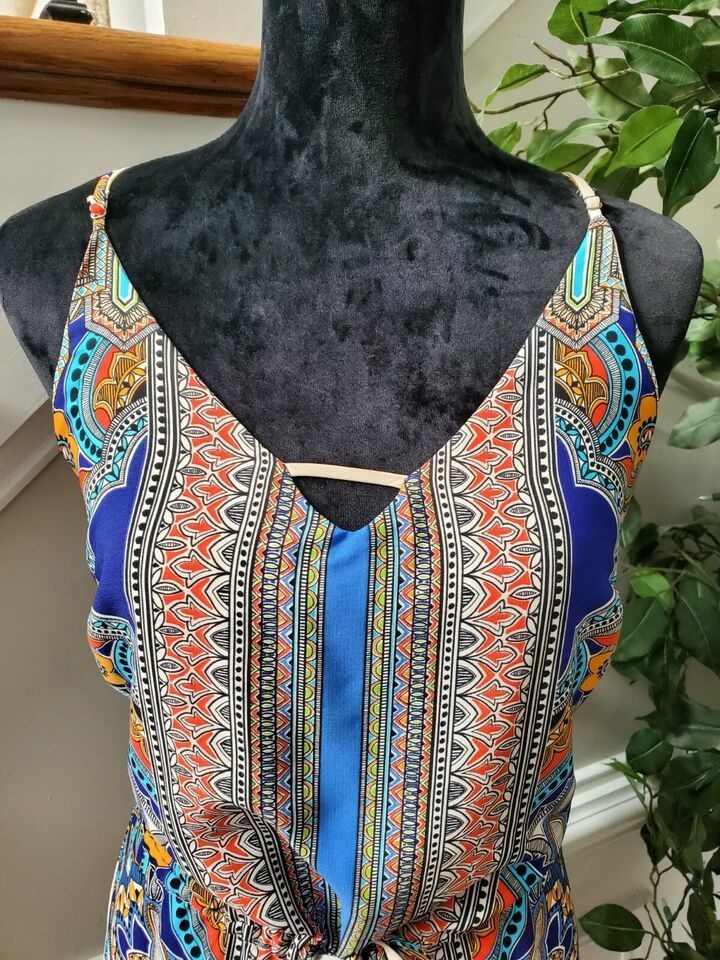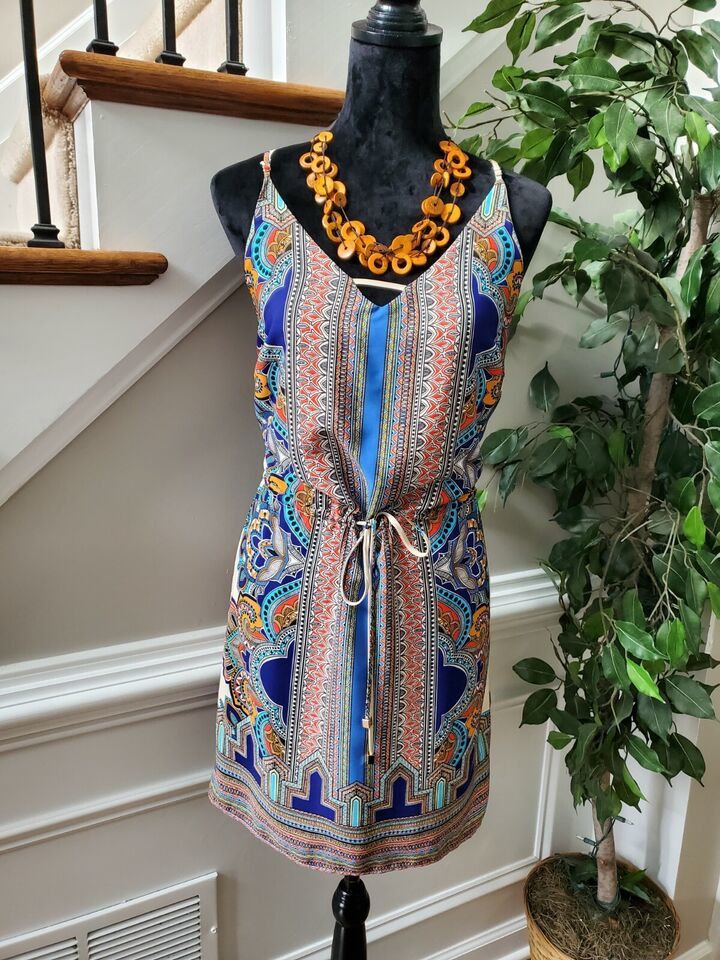5|48 Women's Multicolor 100% Polyester V-Neck Strappy Knee Length Dress Size S