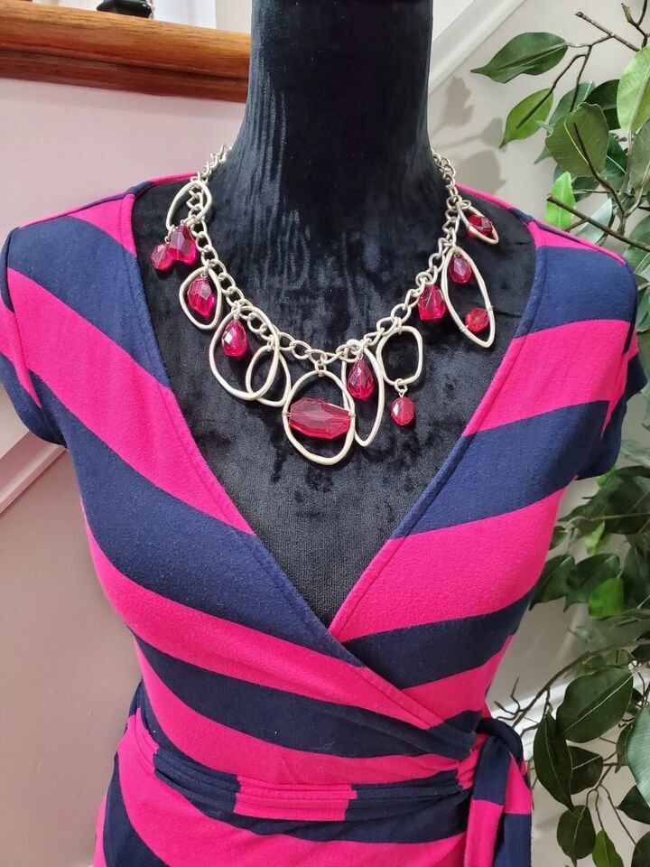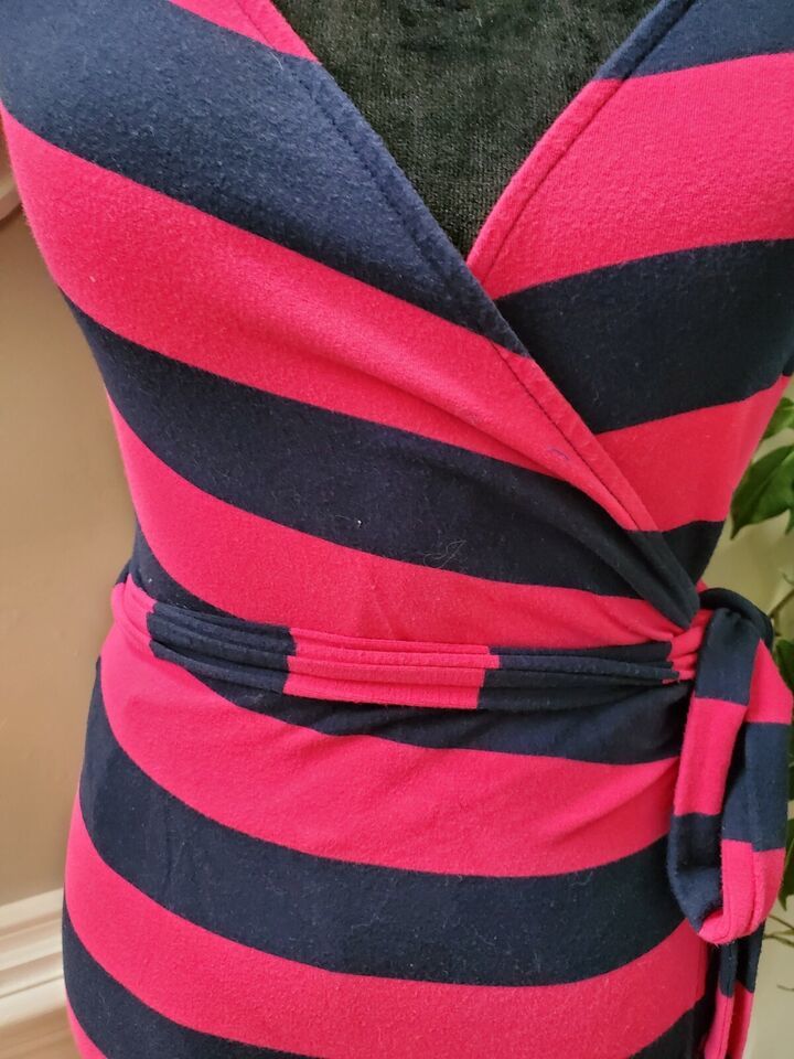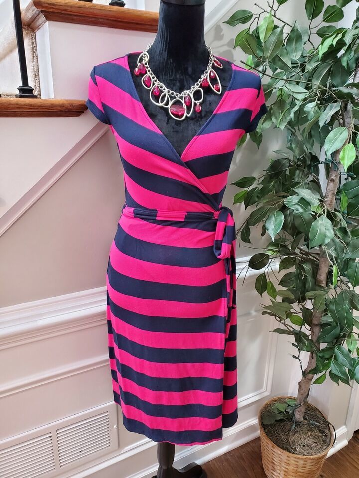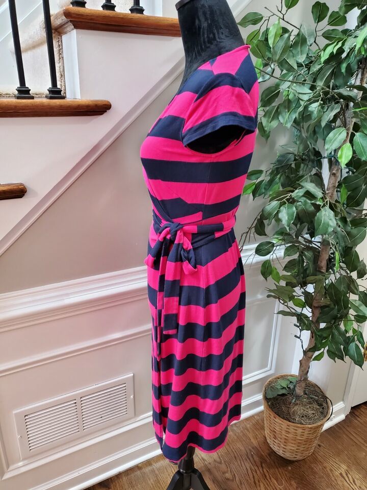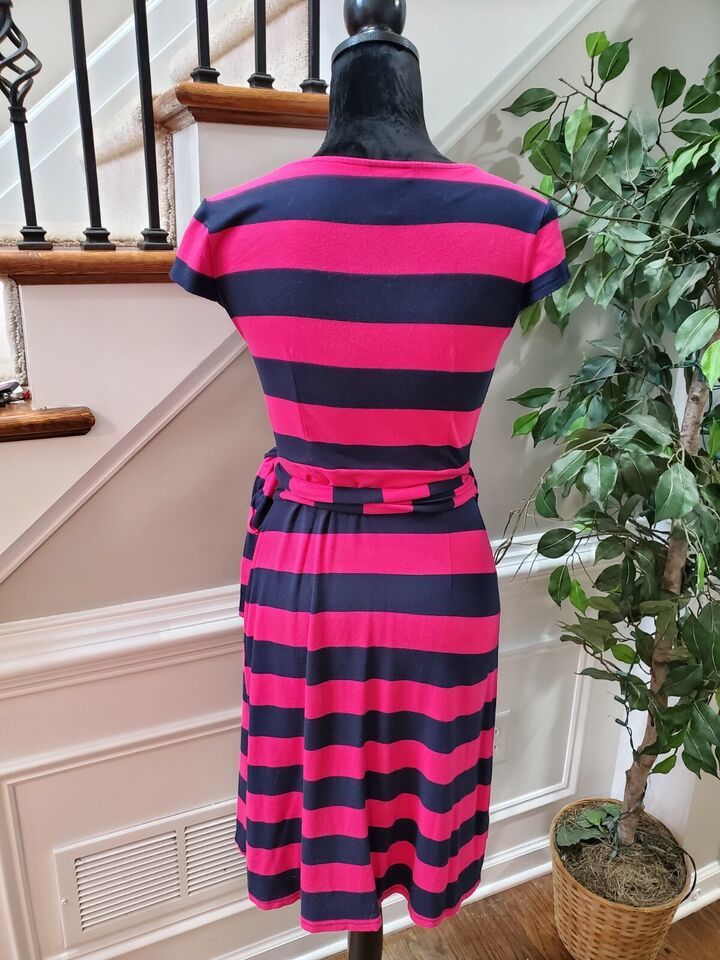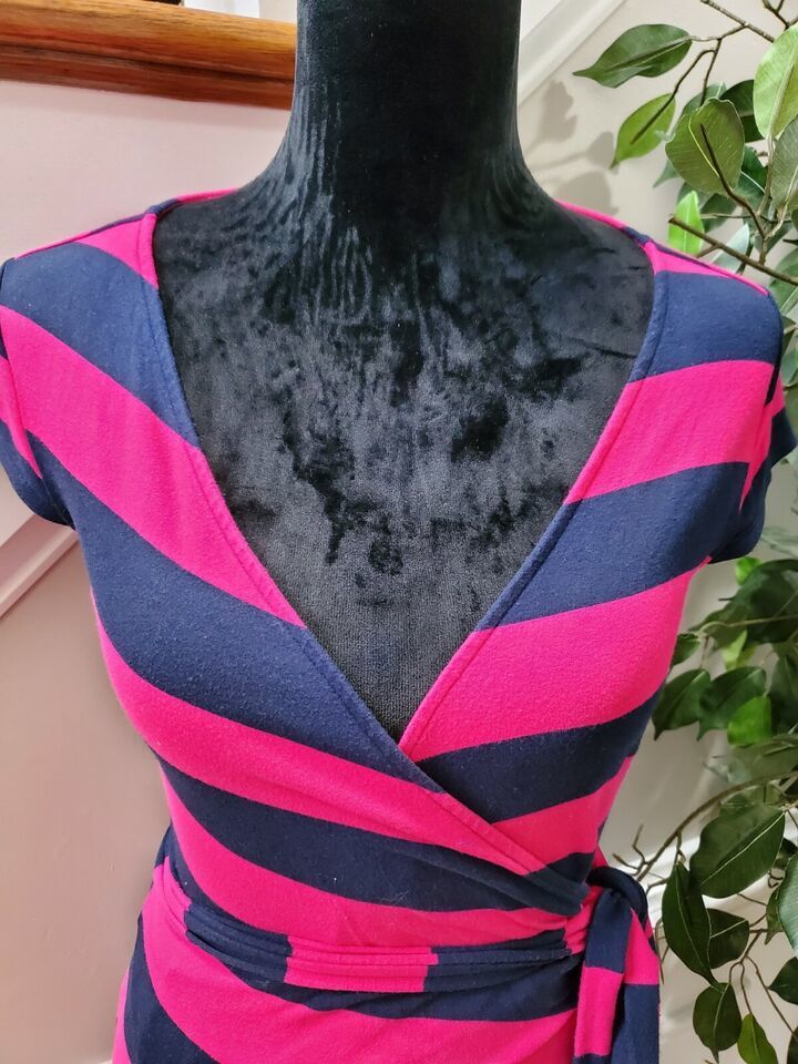 Ann Taylor Women Blue & Pink Rayon V-Neck Short Sleeve Knee Length Dress Size XS