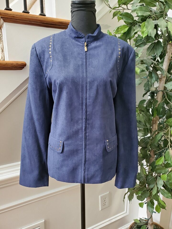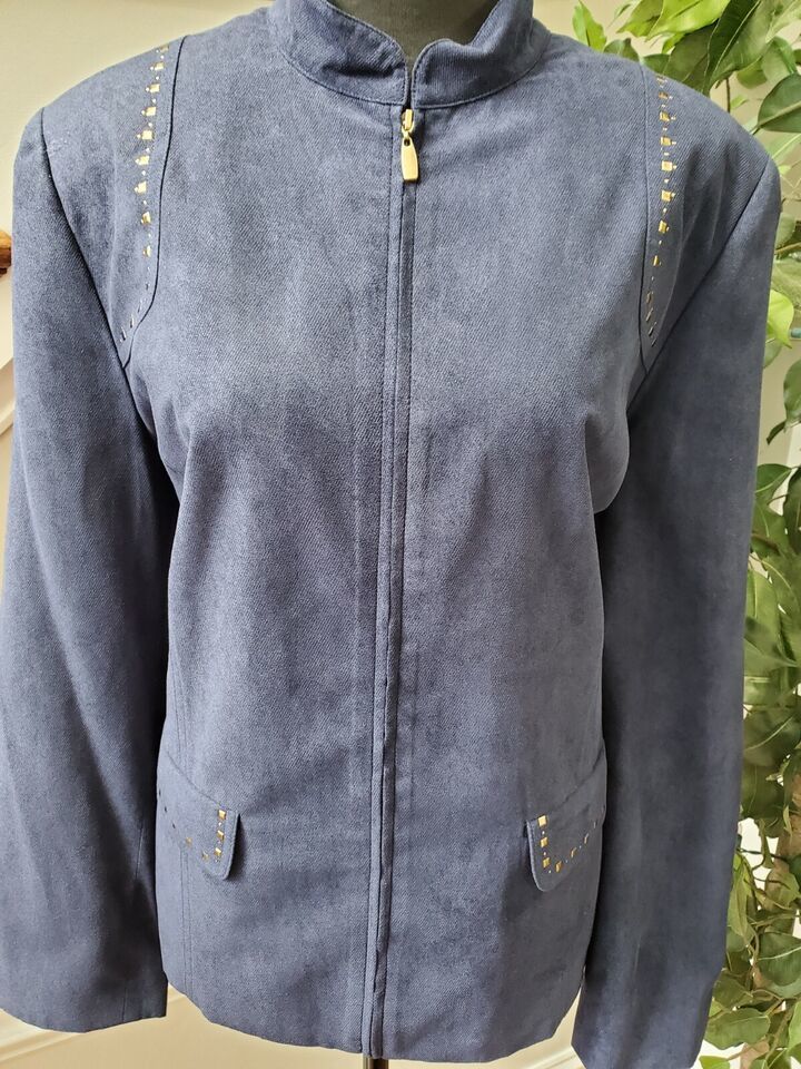 Alfred Dunner Women's Blue 100% Polyester Long Sleeve Full Zip Casual Jacket 14.