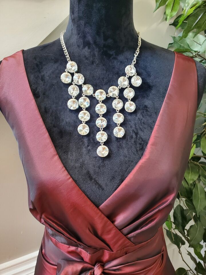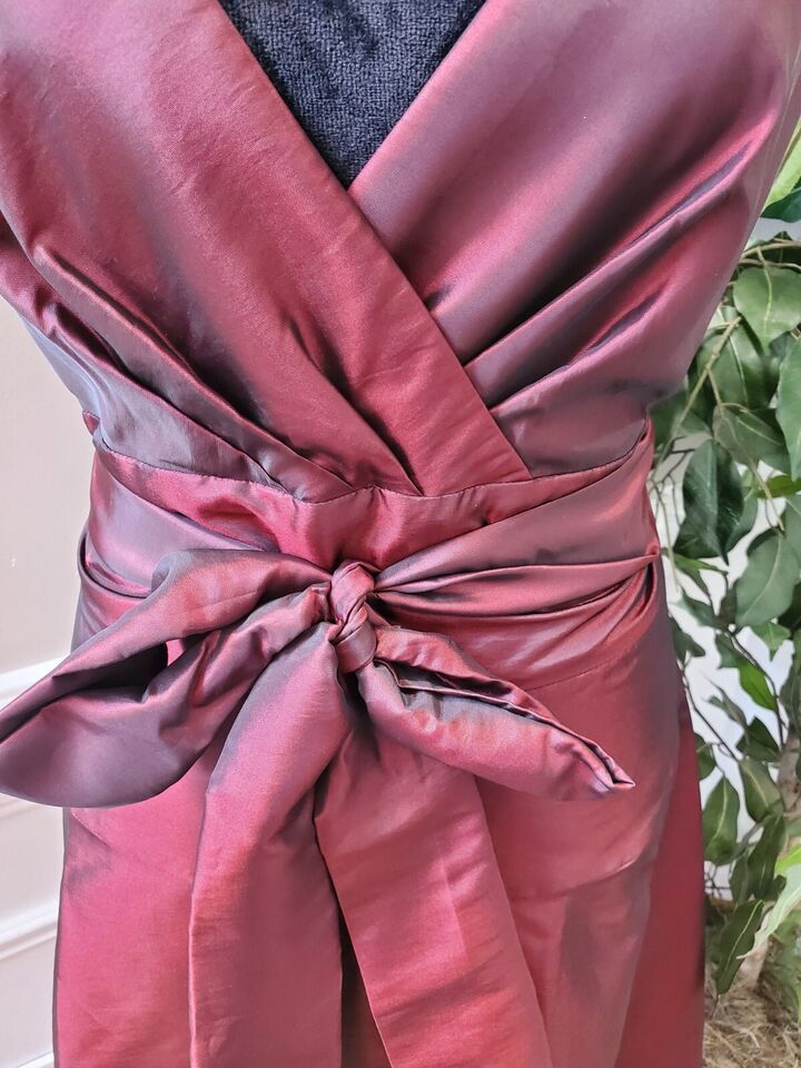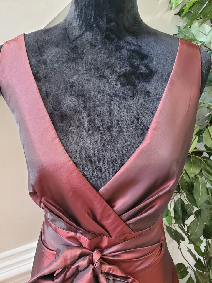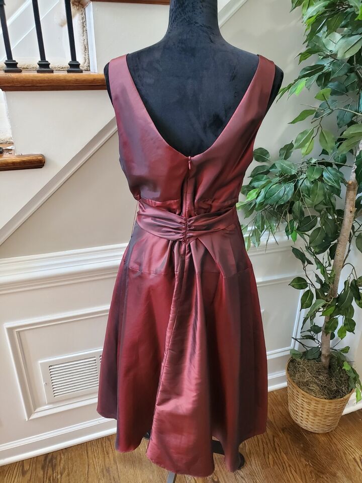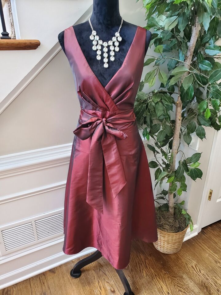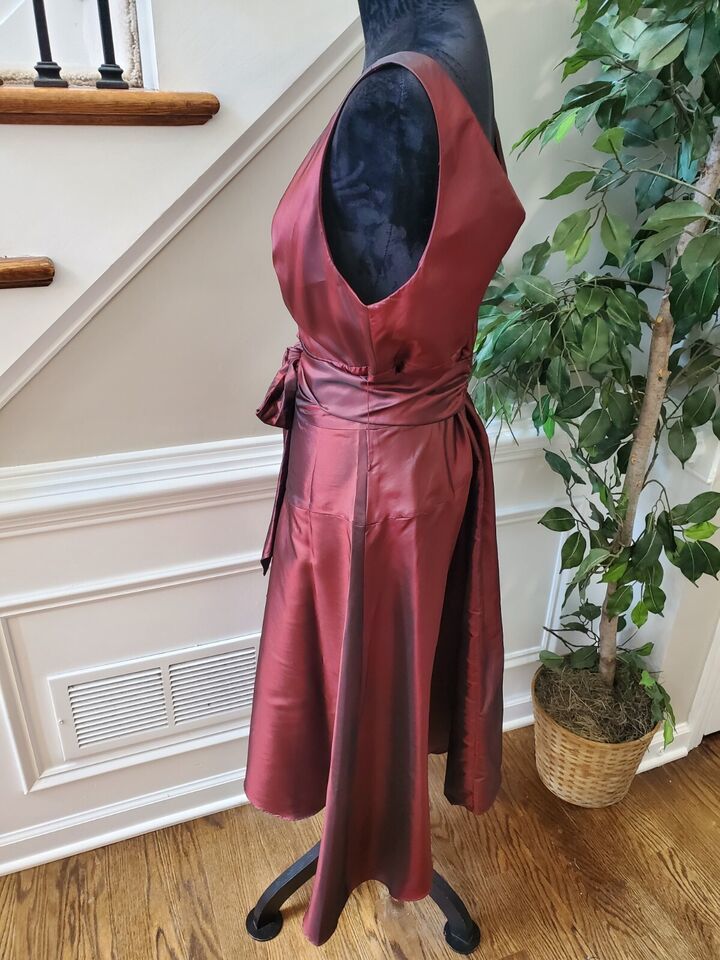 Coldwater Creek Women Burgundy Polyester V-Neck Sleeveless Knee Length Dress 14