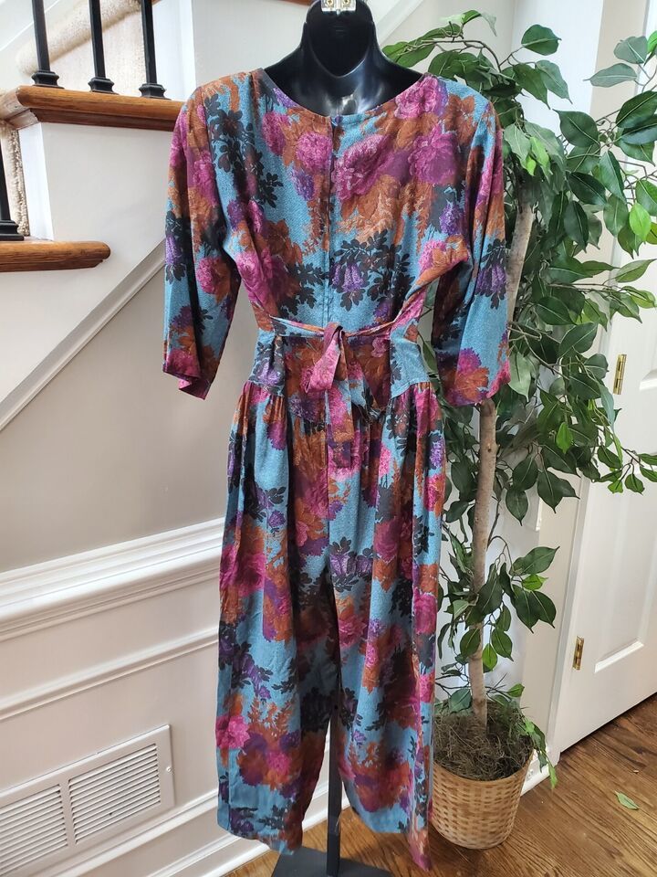 Vintage Rabbit Multicolor Floral Long Sleeve Round Neck Casual Jumsuits Size 5/6
