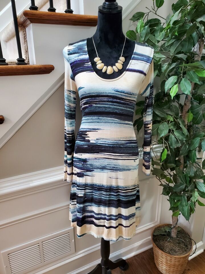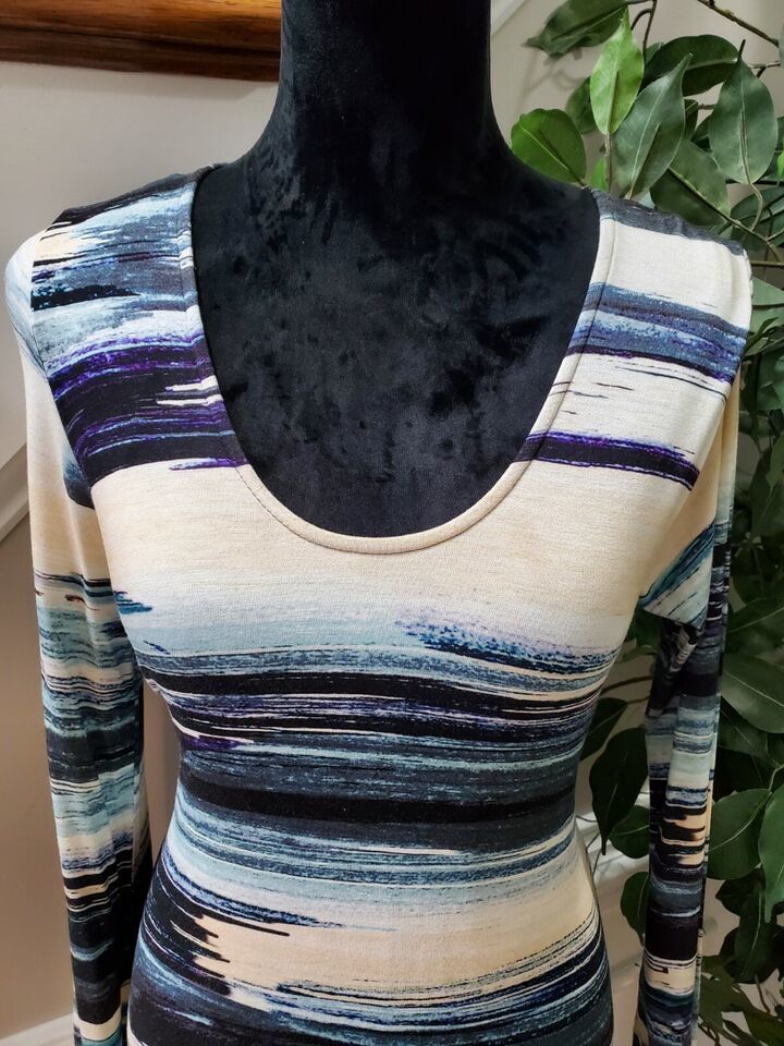 Karen Kane Women's Multicolor Viscose Scoop Neck Long Sleeve Knee Length Dress S