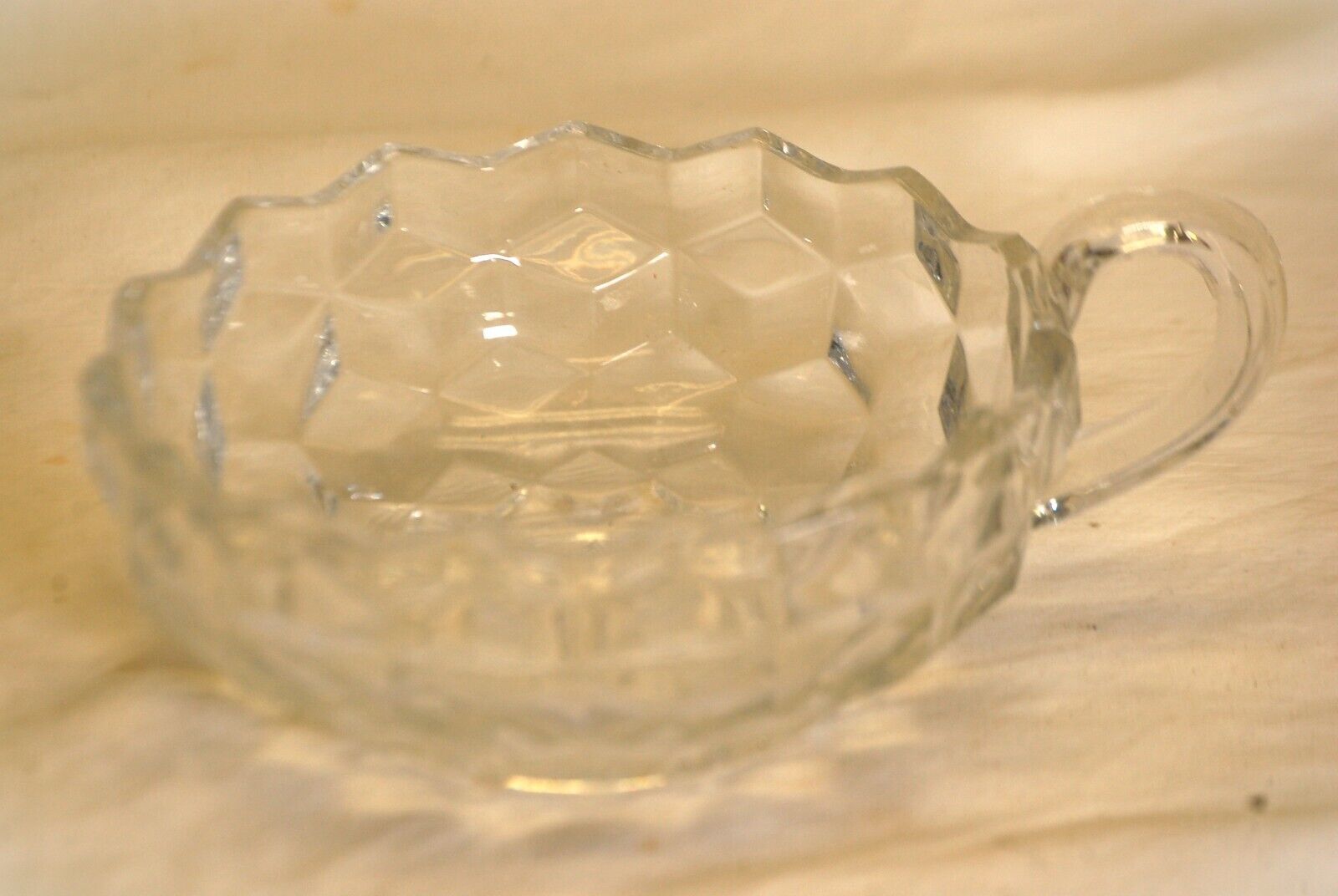 Fostoria American Clear Cubed Nappy Bowl Clear Glass Handle Candy Dish