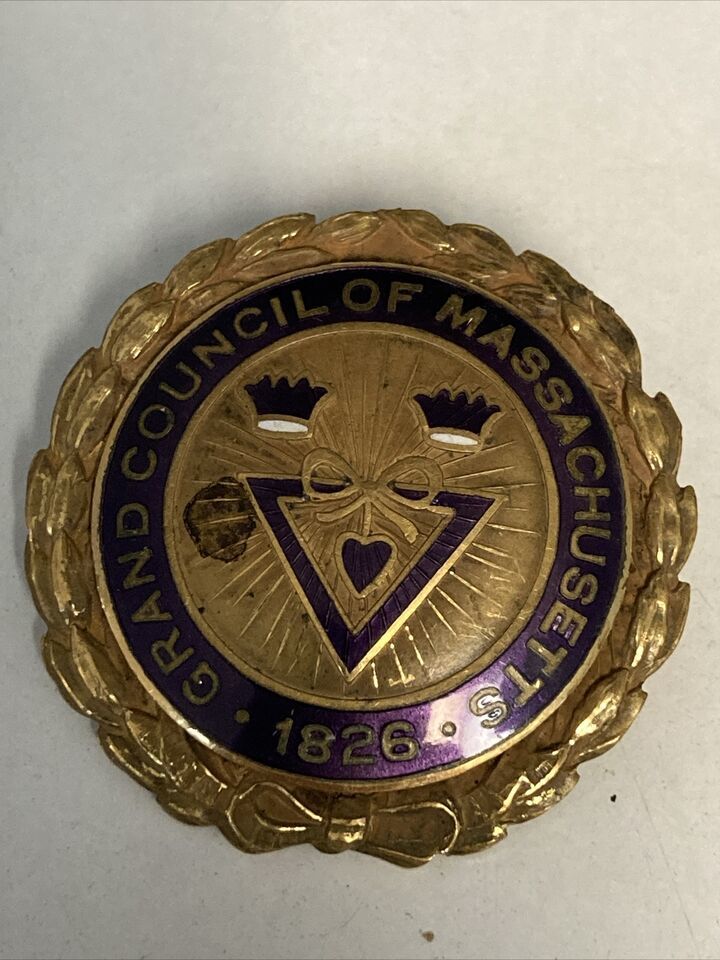 Grand Council of Masons in Massachusetts 1826 Large Heavy Gold Plated Badge Pin
