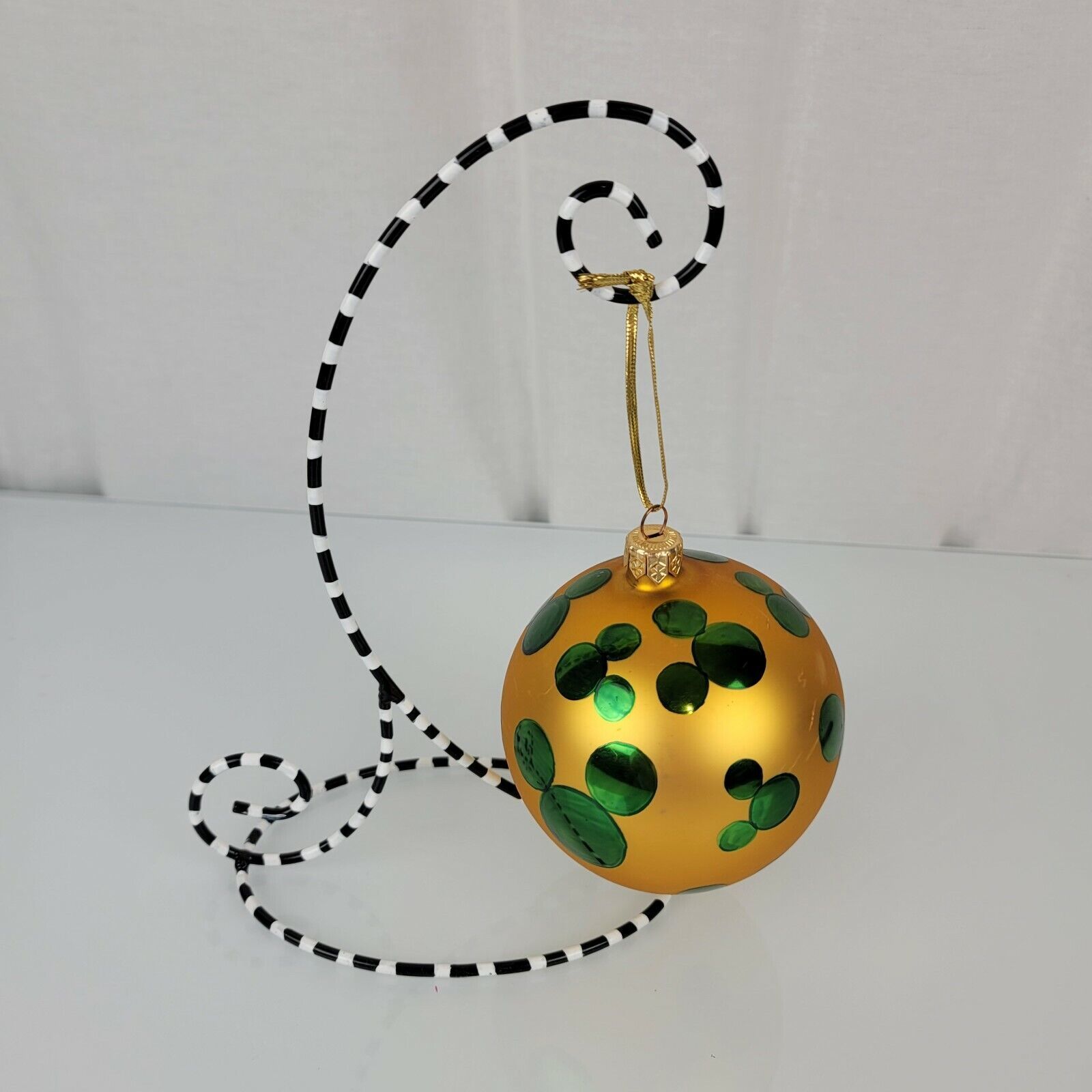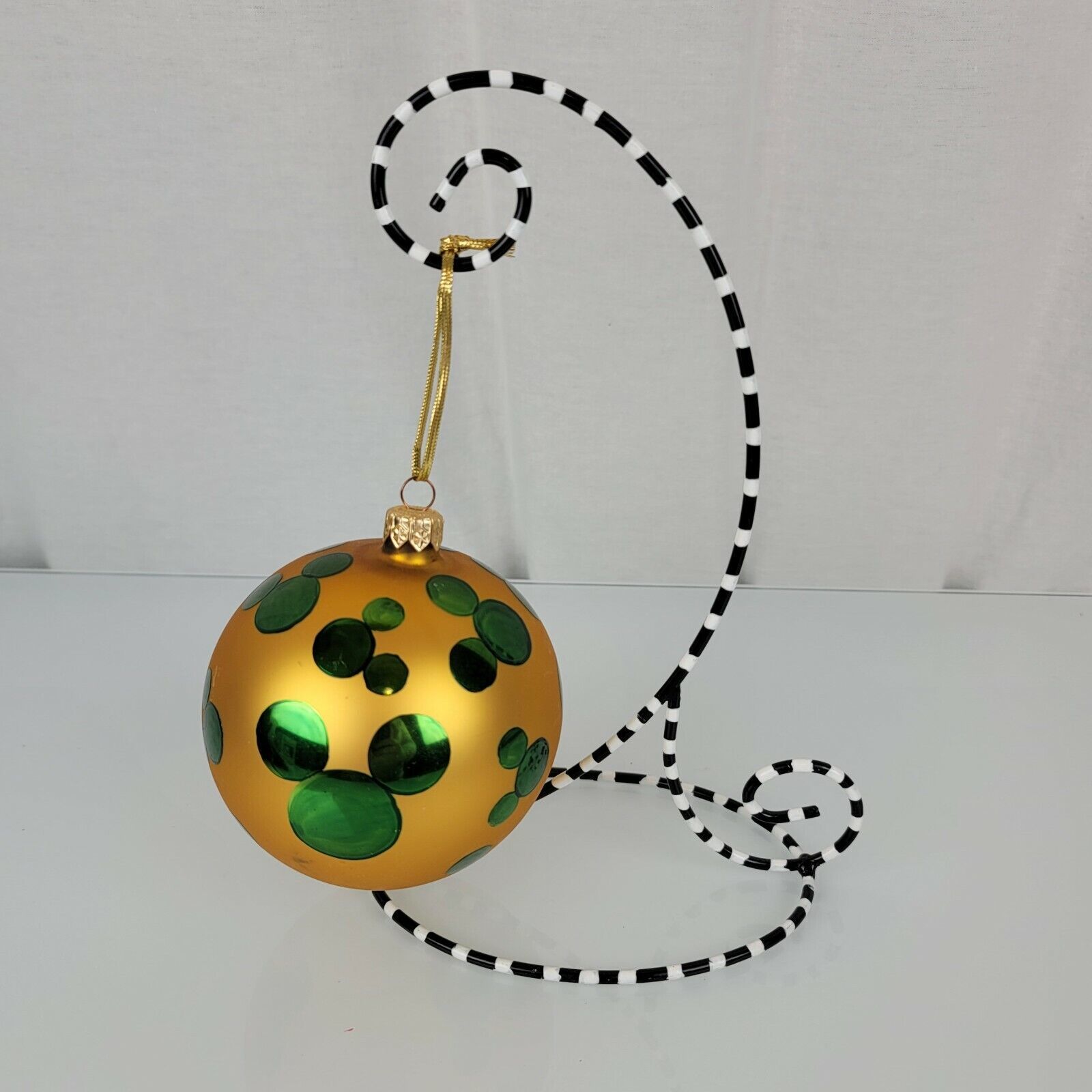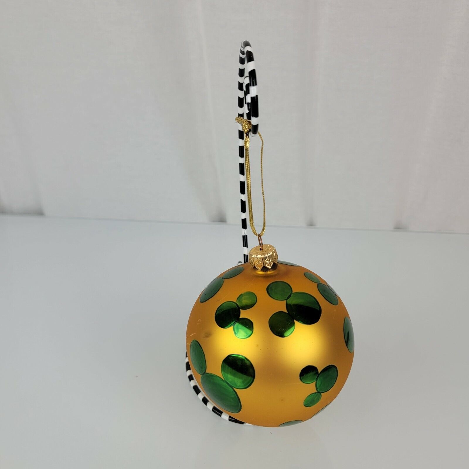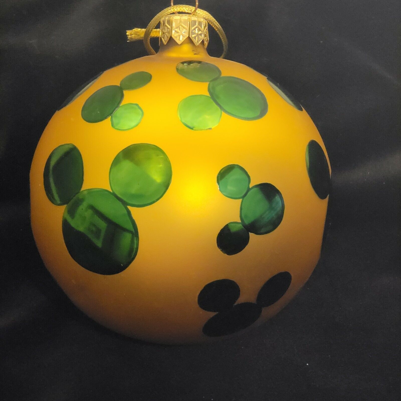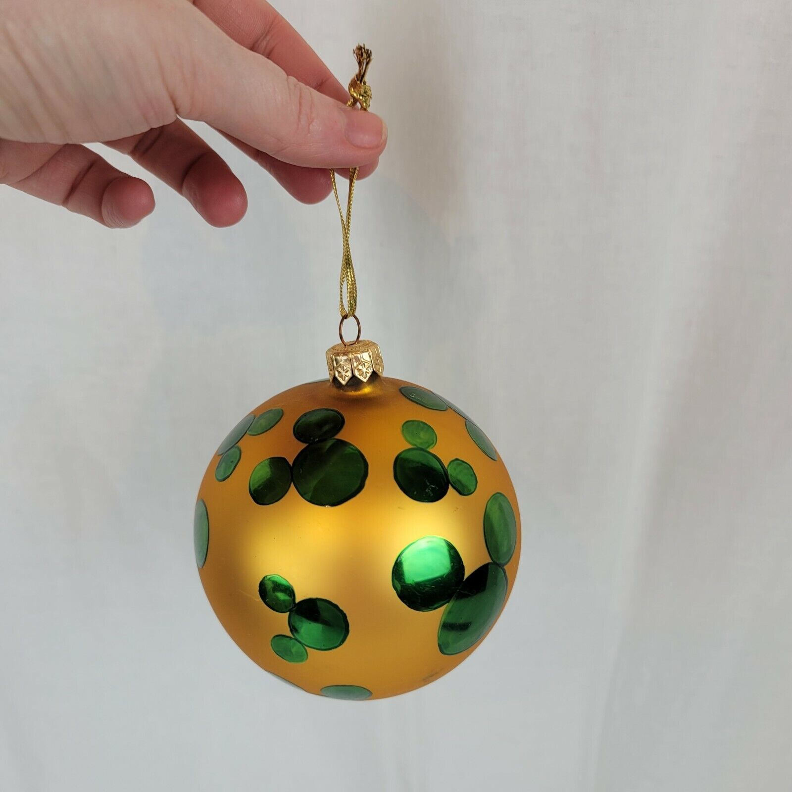 Disney Parks Mickey Mouse Ears Gold Green Glass Ball Christmas