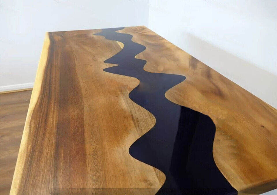 Black Epoxy Solid Oak Mid-Century Modern Home Unique Decor