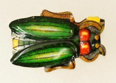 Vintage Costume Jewelry Japan Tin Litho Green Beetle Insect Brooch Pin