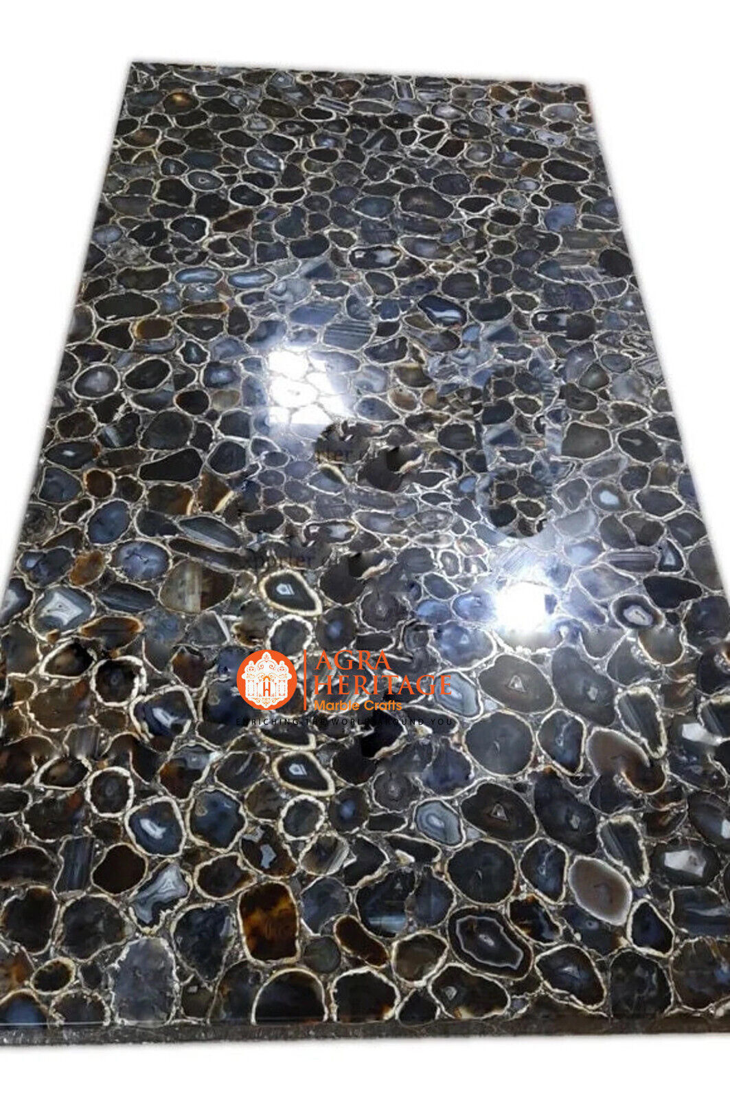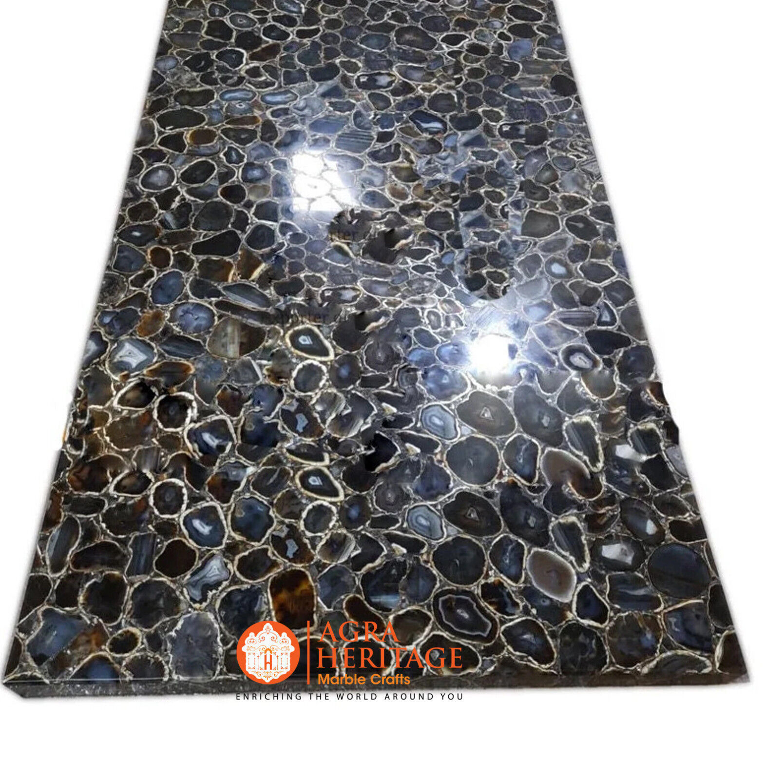 Black Agate Stone Top Rectangle Center Table Top for Home & Kitchen Custom Decor