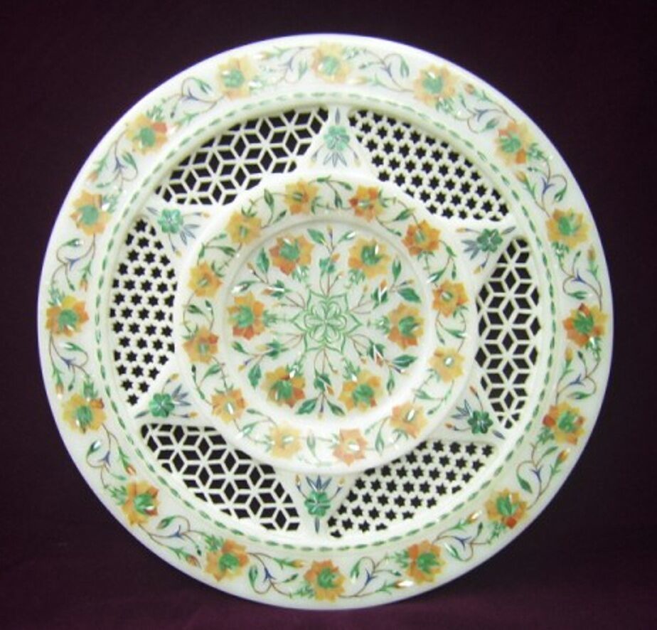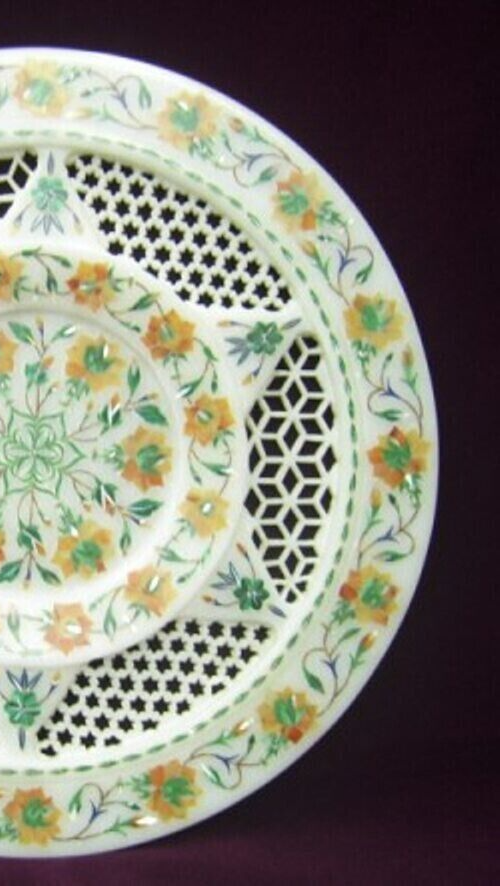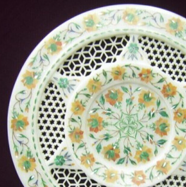 Round White Marble Inlay Plate, Filigree and 48 similar items