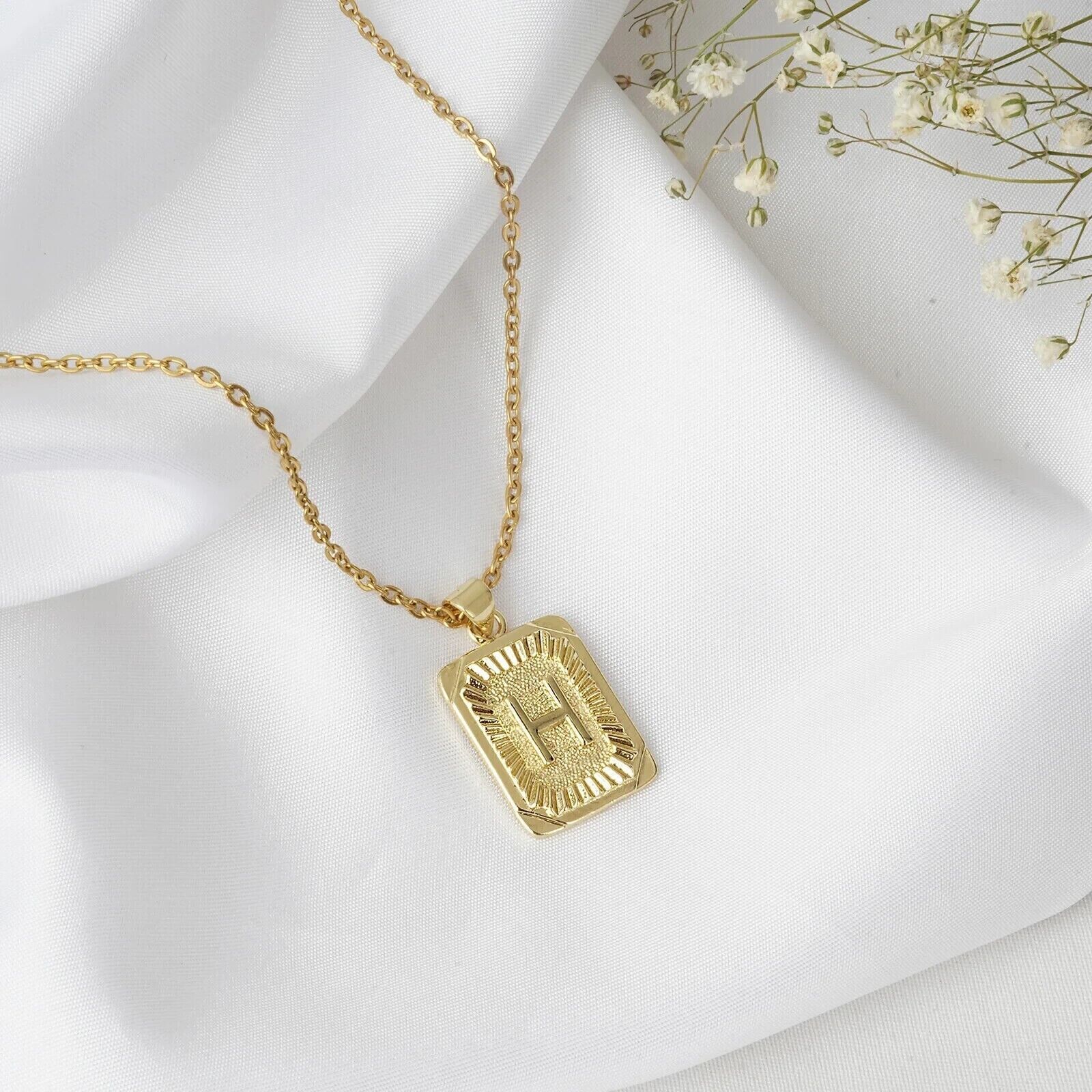 100% Pure 925 Sterling Silver Letter "H" Charm Pendant 14k Yellow Gold Plated
