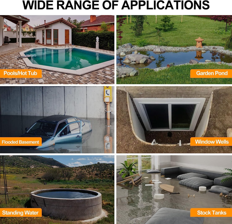 ?Wide Applications?: This electric water pump with float switch is great for draining water from swimming pool, basements, pits, garden ponds, window wells, rain barrels or other flooded areas. The water transfer pump is also perfect for irrigating, garden watering, car washing and other home requirements.