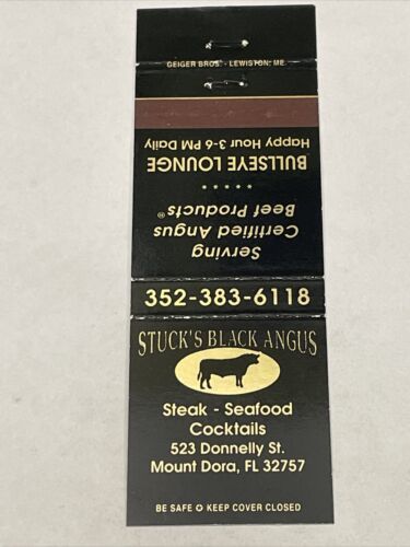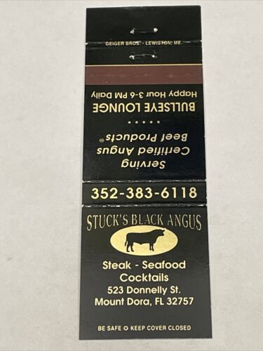 Matchbook Cover Stuck’s Black Angus restaurant Mount Dora, FL gmg Unstruck