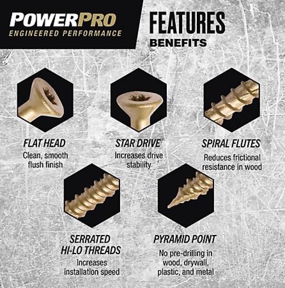 At Power Pro, we've highly engineered our products to be stronger, faster, and the best-in-class, so you can feel confident that you're doing only your best work. Our multi-material screws are just what you need to quickly and securely fasten wood, metal, concrete, drywall, or plastic materials. Plus, designed for high performance and improved results, these screws don't require any pre-drilling. Each screw is constructed from high-quality steel, which helps create stronger connections and ensures the durability of every fastener. Whether you're working on metal, cement board, drywall, brick, or wood, Power Pro has the right tools and hardware for the job.