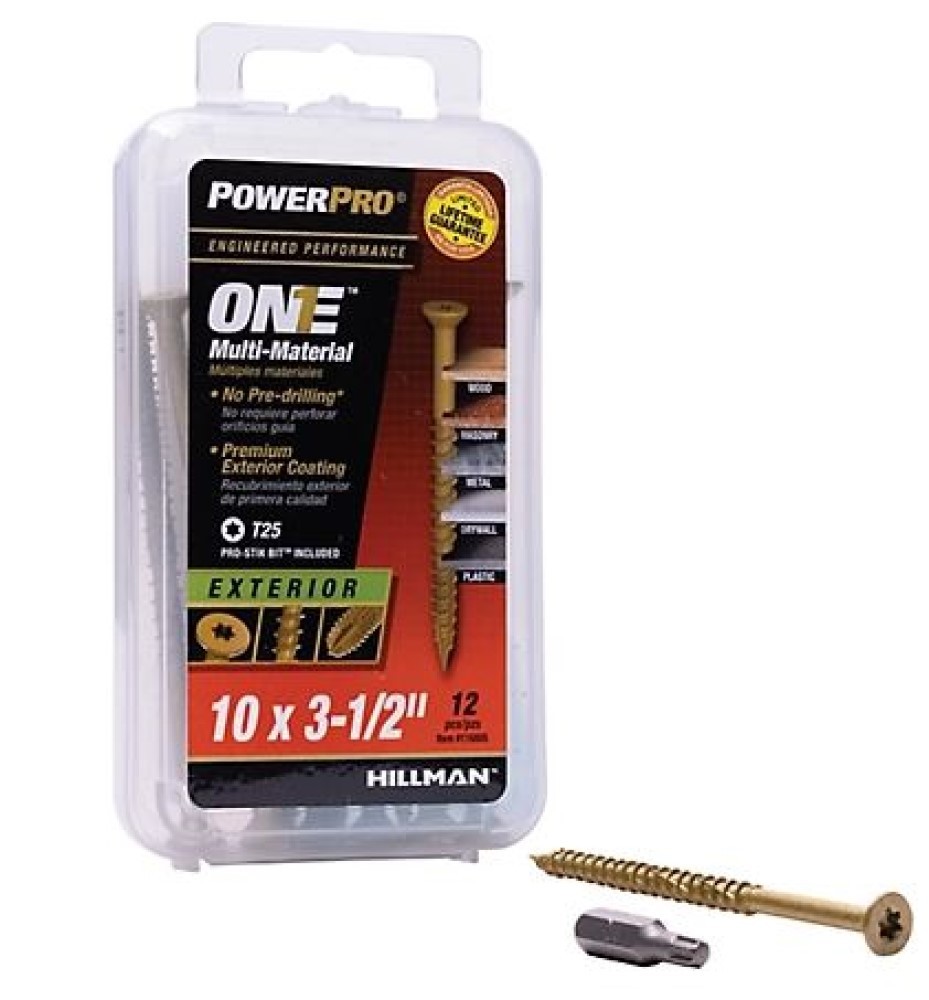 Hillman 116805 Power Pro One Bronze Multi-Material Screws #10 x 3-1/2", 12-Pack