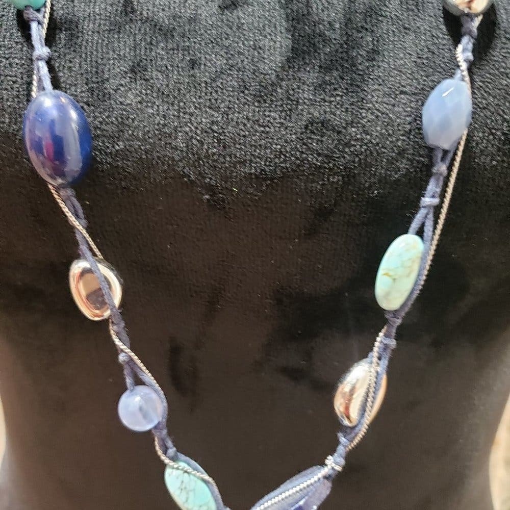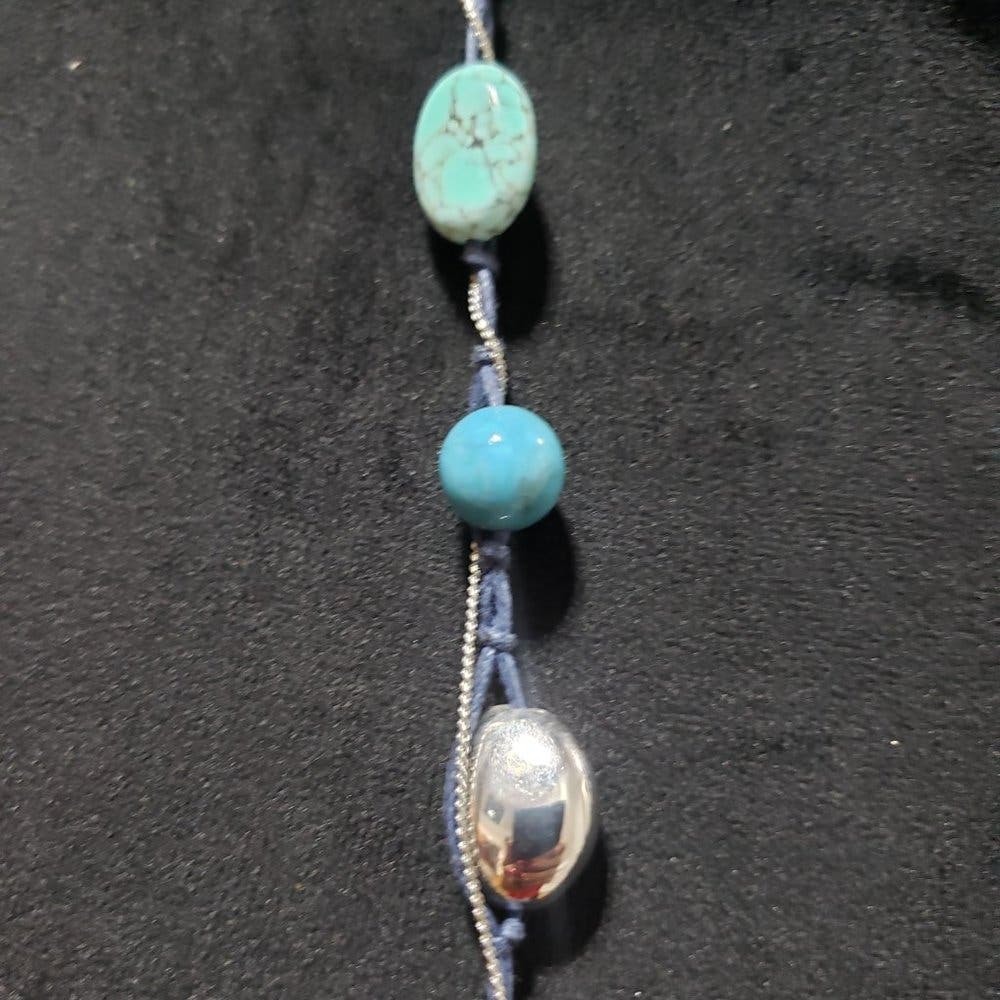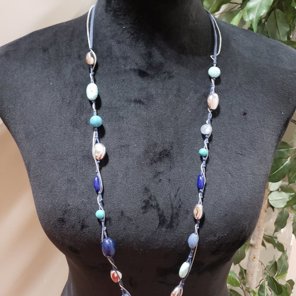 Lia Sophia Silver Tone Blue Bead Stone Bohemian Long Necklace with Lobster Clasp