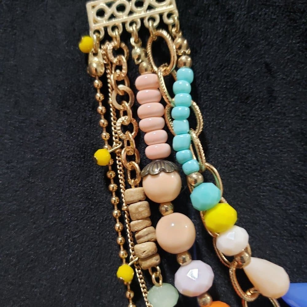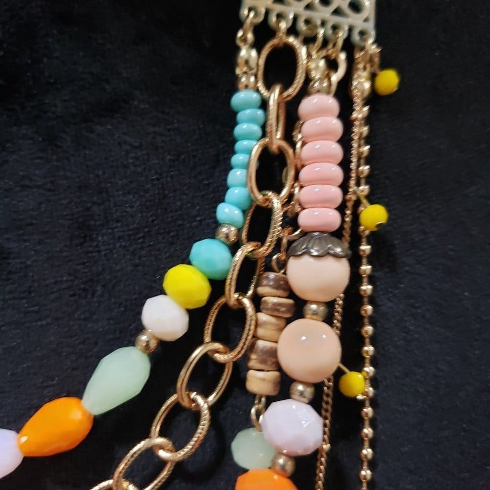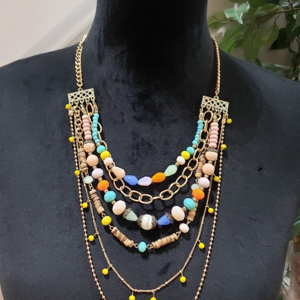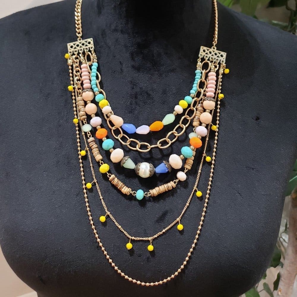 Plunder Multi Resin Layered Bead Gold Tone Boho Statement Necklace and Bracelet
