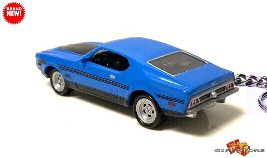 RARE KEYCHAIN 1971~72~1973 BLUE BLACK FORD MUSTANG MACH 1 CUSTOM GREAT GIFT