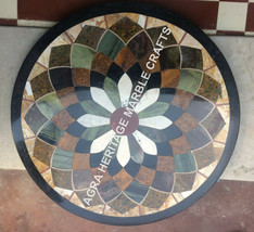 30" Marble Top Black Outdoor Table Top Marquetry Inlay Kitchen Home Decor H5370A
