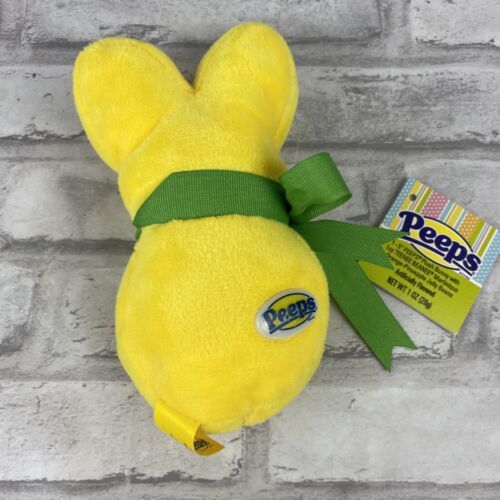Peeps 6" Yellow Plush Just Born Easter Bunny Plush Toy Green Ribbon NWOT