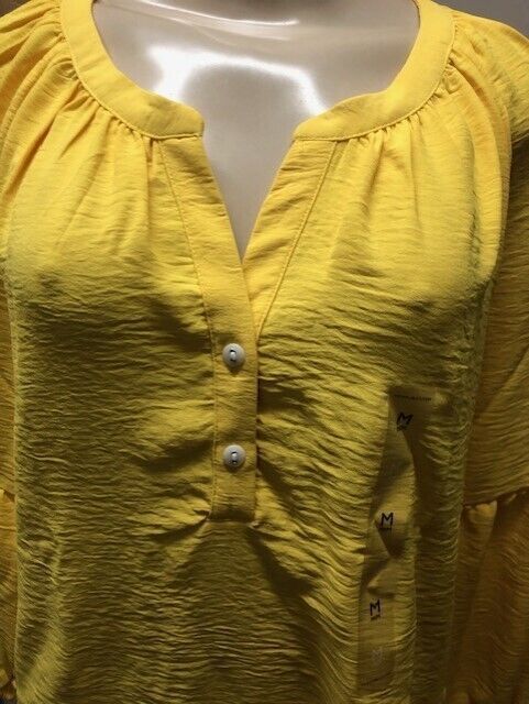 Tommy Hilfiger Women’s Long Balloon Sleeve Blouse Top Round Hem Sz M Yellow NWT