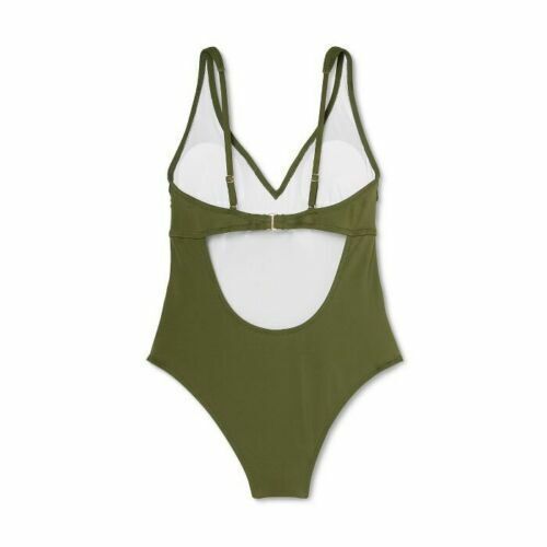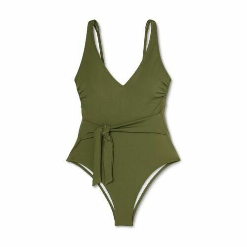 Womens Plunge Tie-Front Wrap One Piece Swimsuit - Shade & Shore - Sz M GREEN NWT