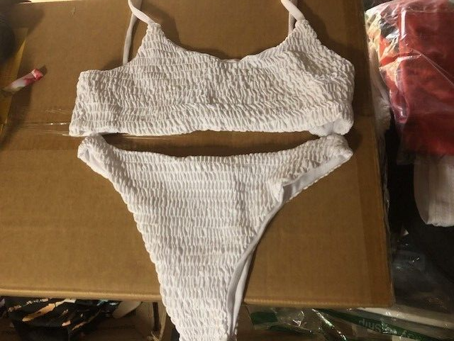 NEW Women's 2 Piece Texture Sexy Bralette Bikini Swim Swimsuit Set White Sz S