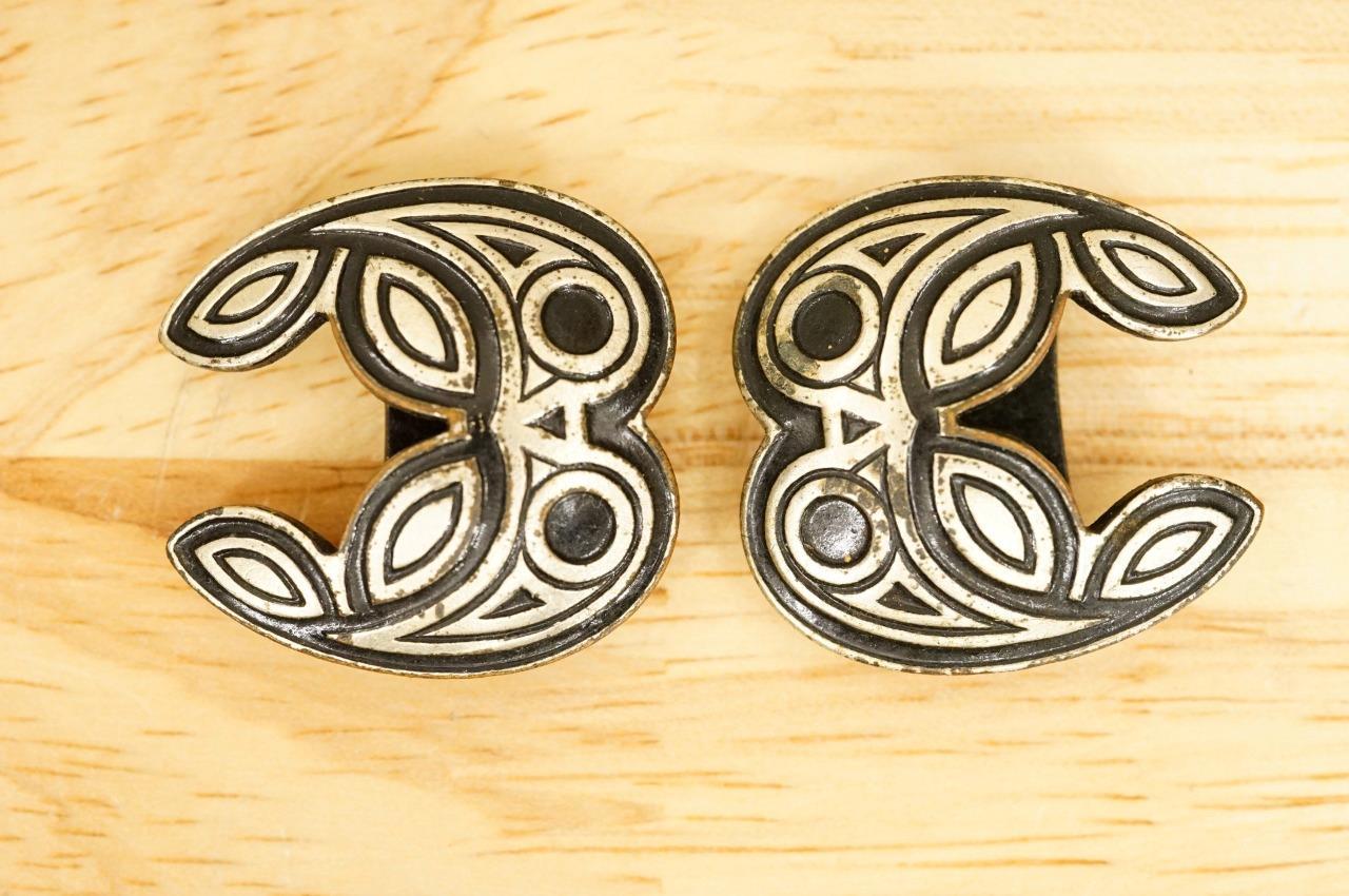 Vintage Costume Jewelry Art Deco Geometric Collar Tabs Shoe Clips Metal - black and silver tone metal. Measure 1" by 1-1/8". No smoke or pet odors.