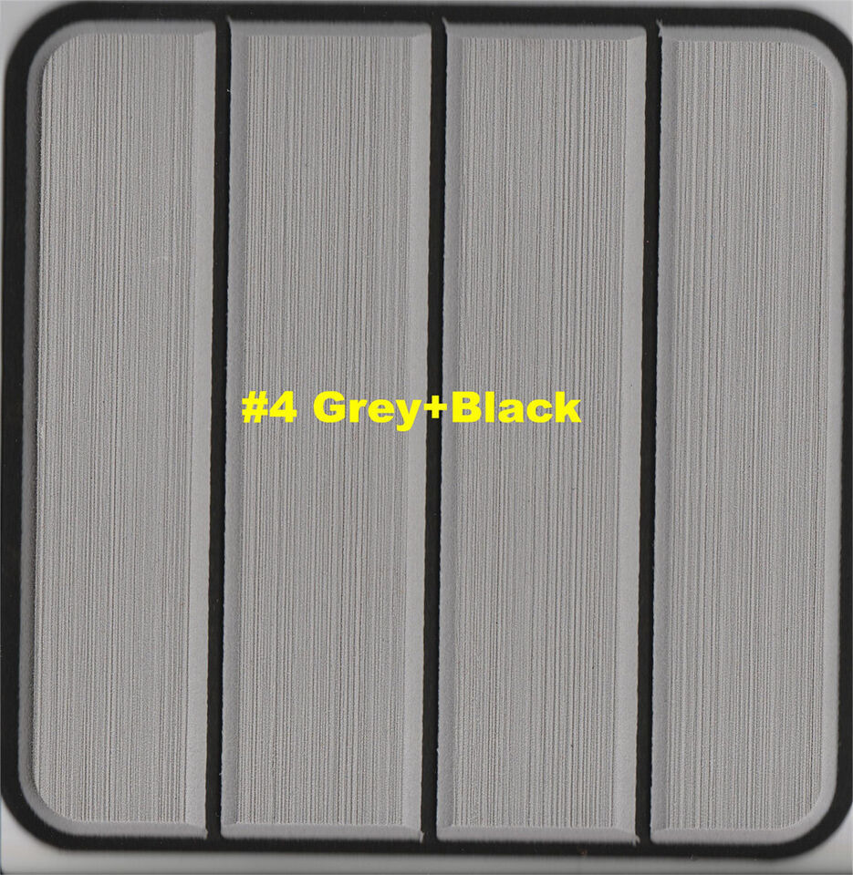 The EVA floor is 1/4"(6mm) thick two-color pad. You can choose your colors, texture and faux teak option. Additional custom text logos can also be incorporated on EVA floor. All routed logos and beveled edges will show the bottom color selected. All EVA floors come with marine backing glue. All EVA floors listed on our online store are "made to order" and not stocked so please allow up to 2-3 weeks for delivery.