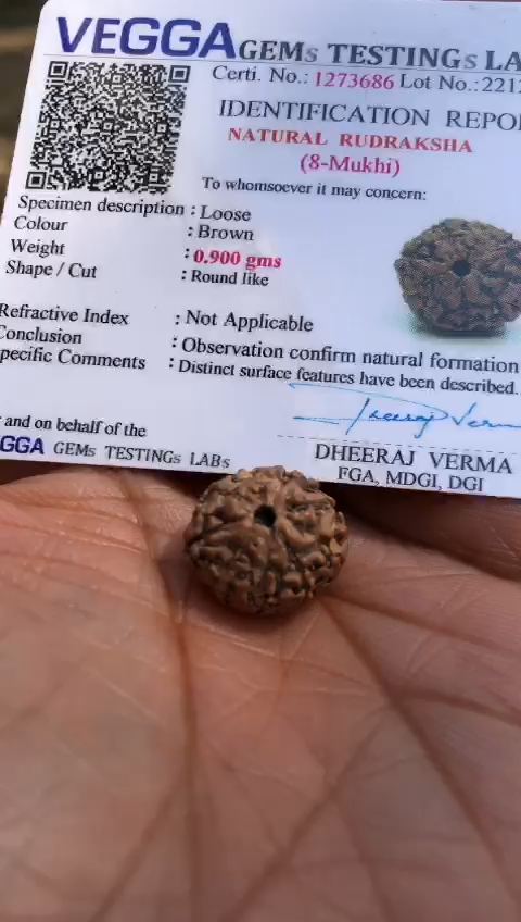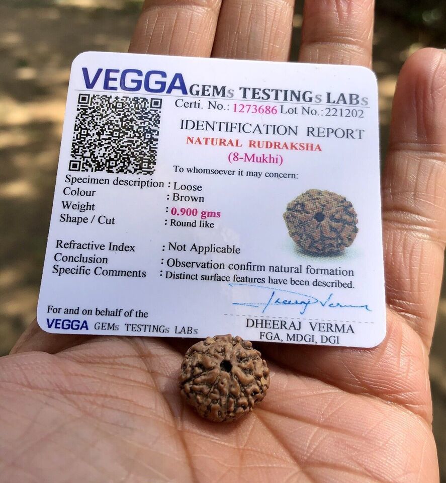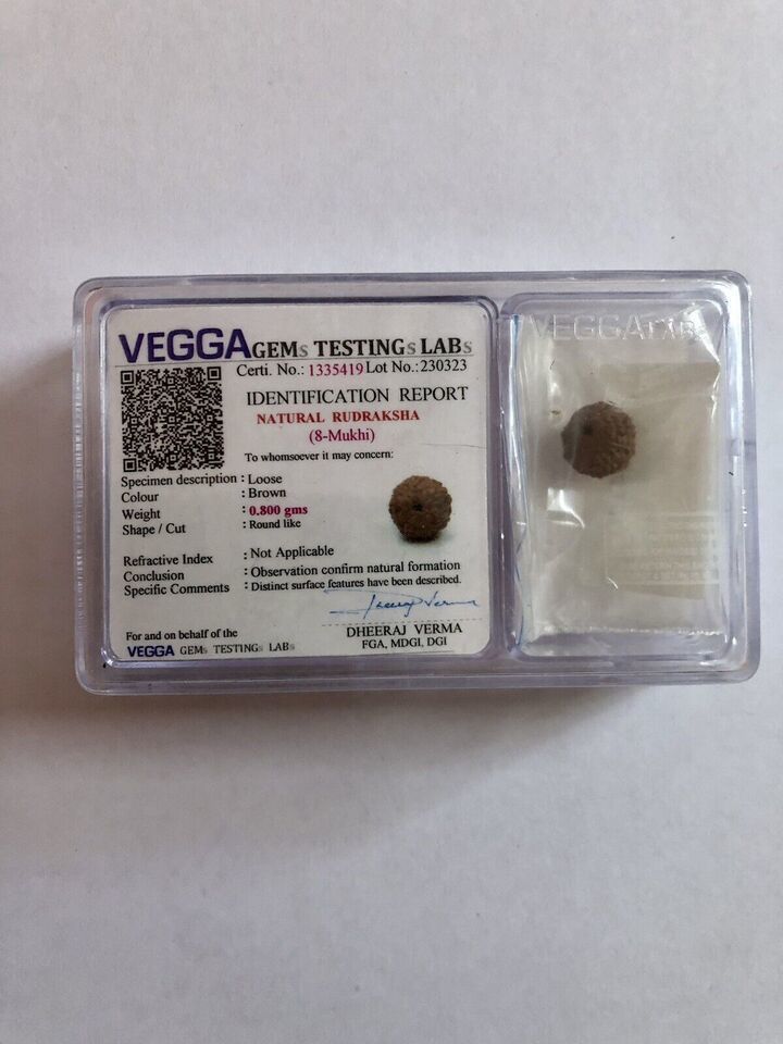 Certificado de laboratorio 8 Mukhi RUDRAKSHA, 8 caras Rudraksham 1 pieza,...
