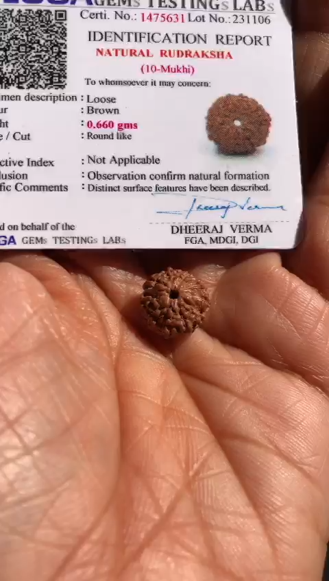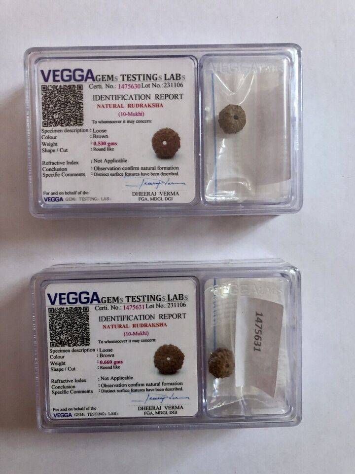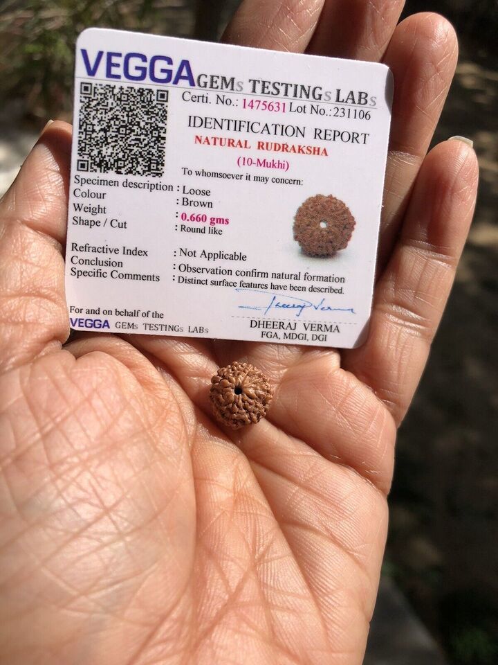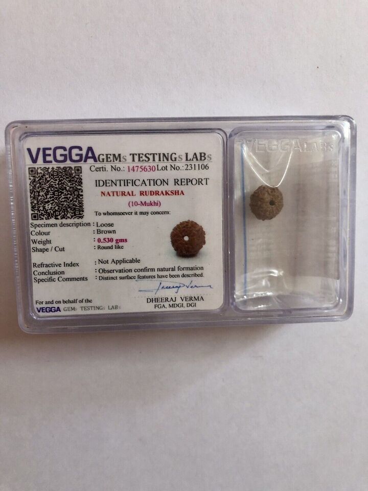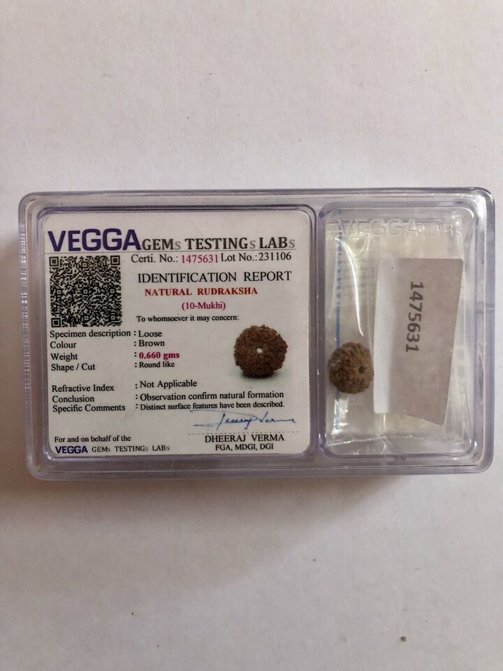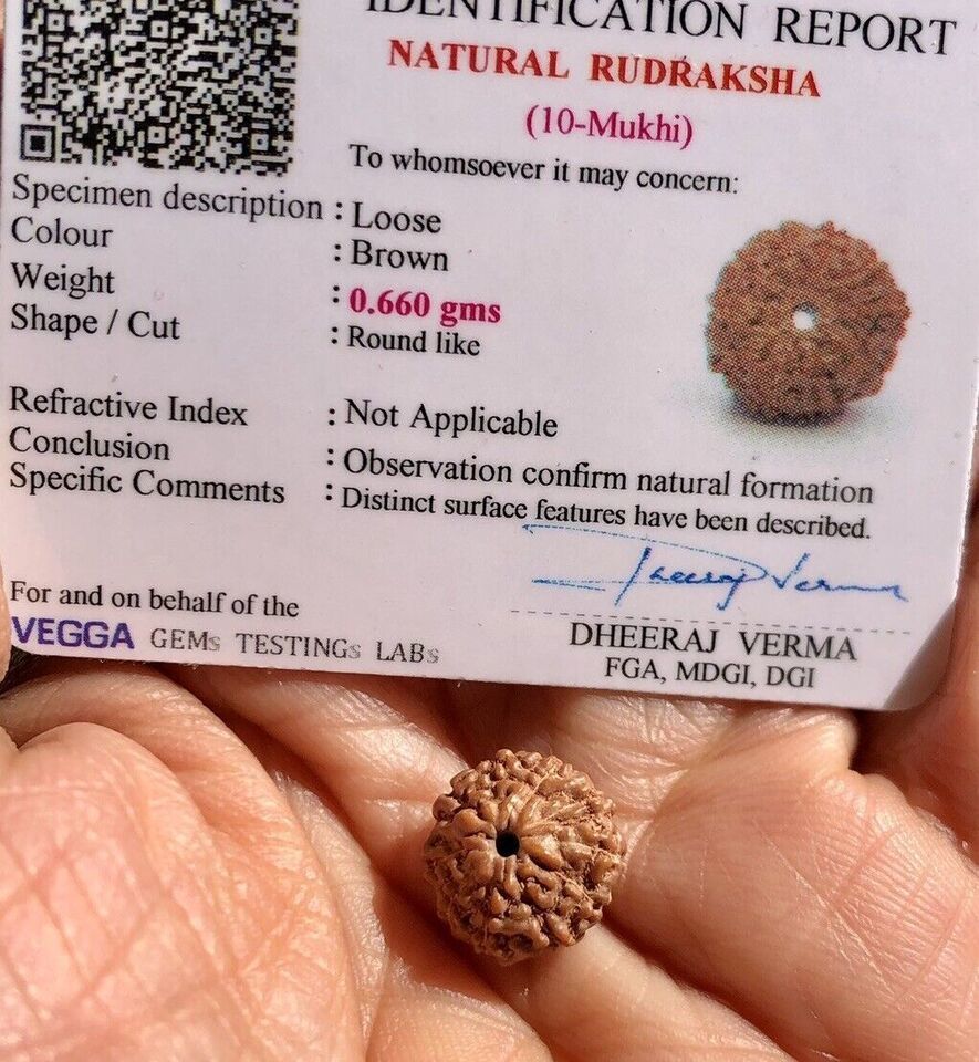 CERTIFICADO POR LABORATORIO 10 Mukhi RUDRAKSHA, 10 Rudraksham de diez caras...