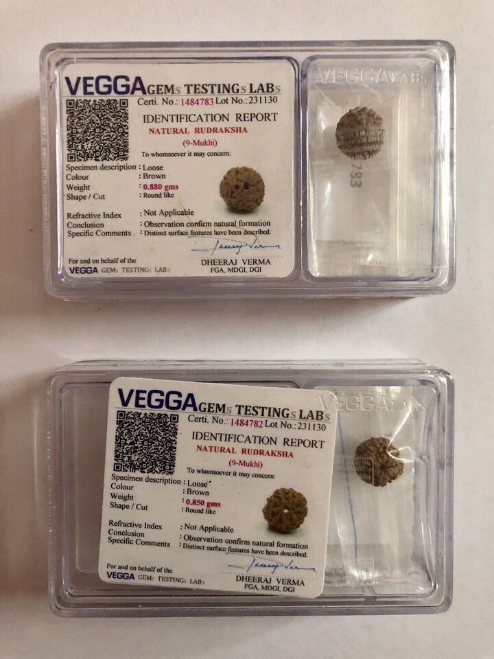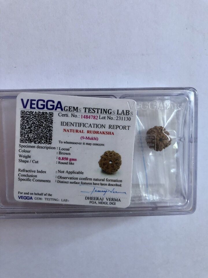 CERTIFICADO POR LABORATORIO 9 Mukhi RUDRAKSHA, 9 Rudraksham de nueve caras...