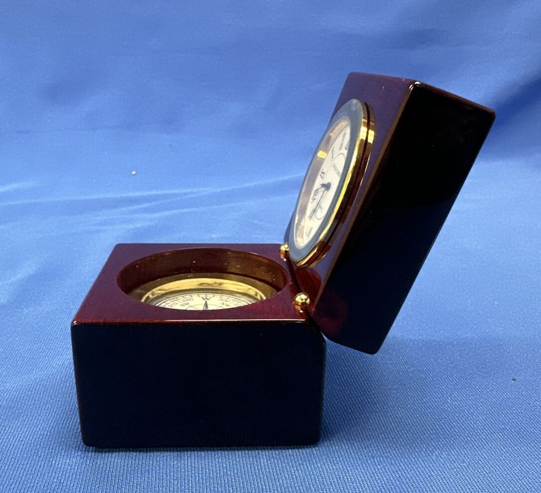 Piano Finished Mahogany Desk Clock W/ Compass