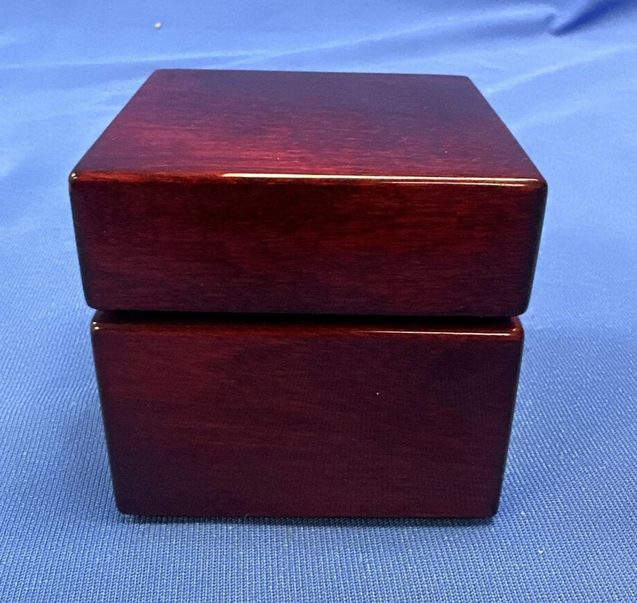 This handsome piano-finish quartz desk clock also features a magnetic compass in its base. The clock-compass case is sculpted from a large 3 1/2 inch (8.6 cm) cube of seasoned solid mahogany, and is then expertly sanded, stained, and finished with 12 coats of hand-rubbed lacquer finish for an unbelievably deep piano grade finish. The clock and compass bezels, and the inset hinges are crafted from solid brass with a rich gold plating. The clock features a highly accurate battery operated Japanese quartz movement (battery included), with a fully functional magnetic compass is inset into the mahogany base. The clock compass is 2 7/8 inches (7.3 cm) tall with the lid closed, 3 1/2 inches (8.6 cm) square, and weighs a solid 14.5 ounces (410 grams). The clock bezel is 2 1/4 inches (5.7 cm) in diameter and the compass bezel is 1 3/4 inches (5.5 cm) in diameter. The bottom of the clock compass is covered with felt to protect your fine furniture. The front of the clock's base can be fitted with a custom engraved brass plaque. This Mahogany Clock Compass makes a perfect gift to adorn an executive's desk, or functional nautical accessory for a book shelf.