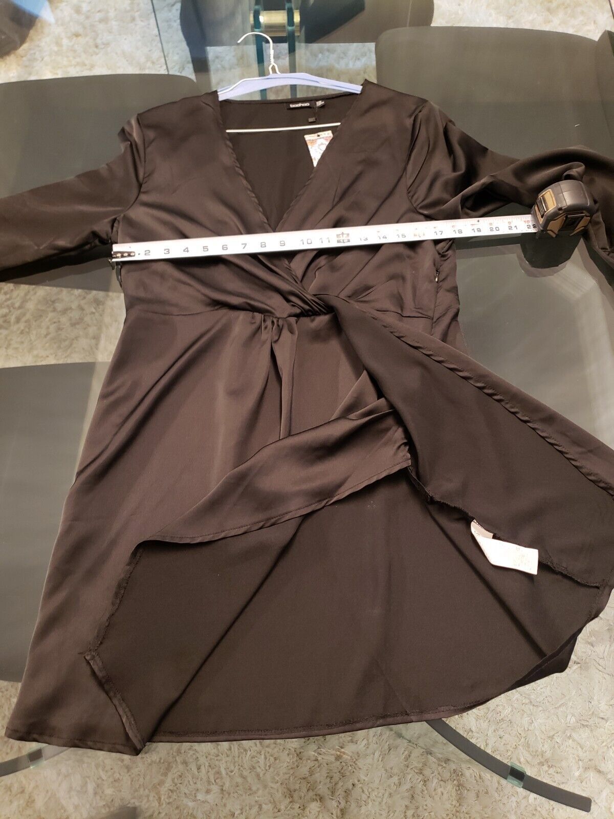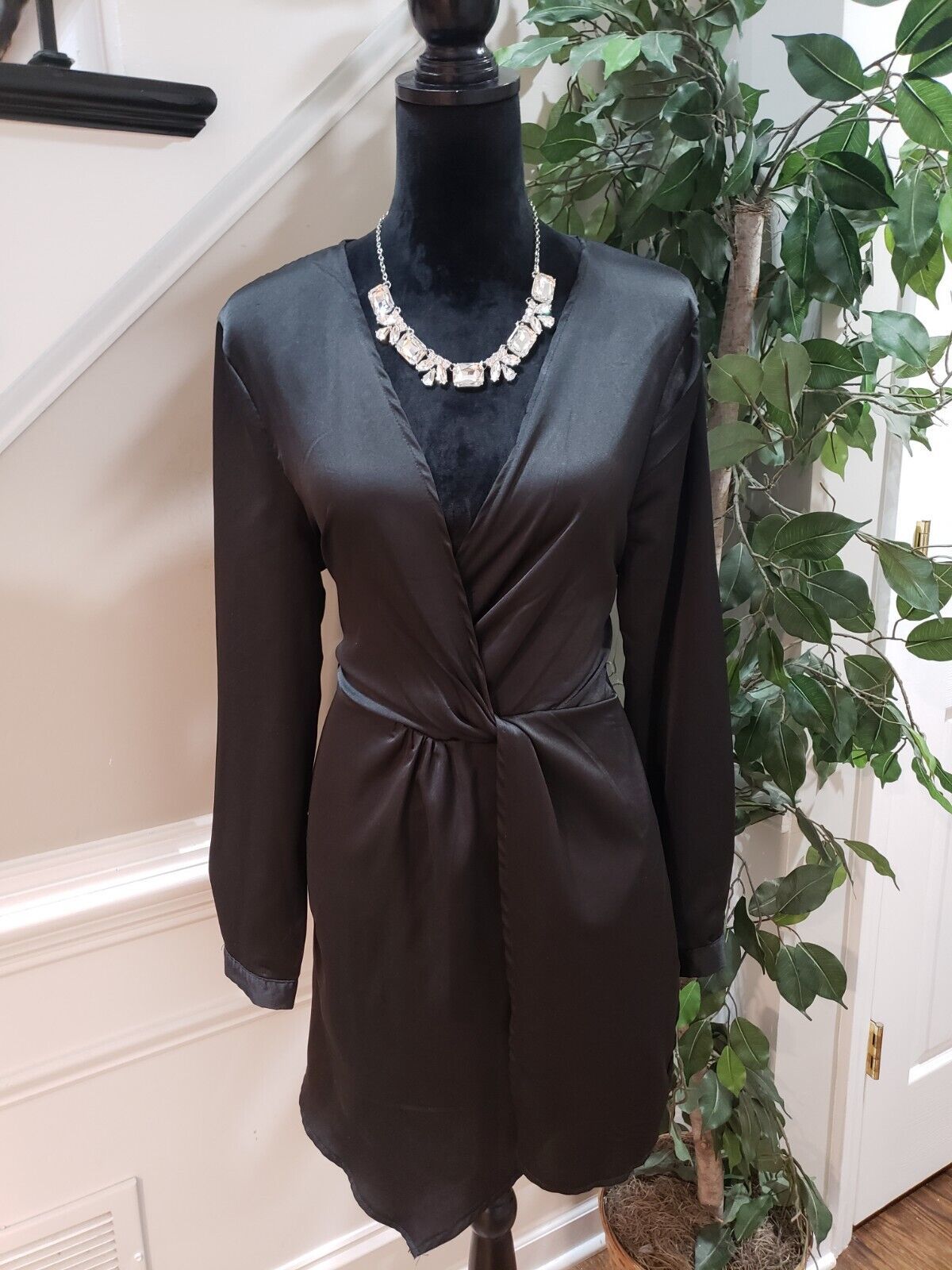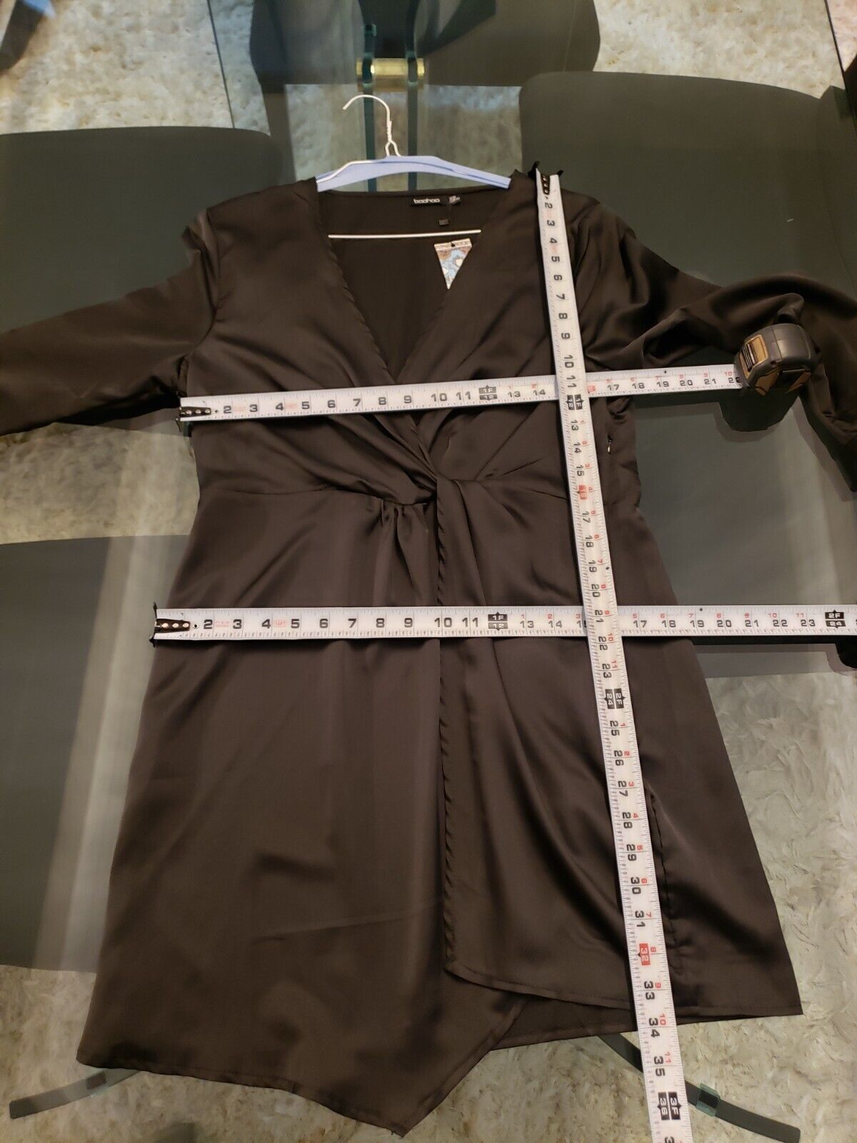 Boohoo Womens Black Solid Polyester V-Neck Long Sleeve Knee Length Dress Size 12.