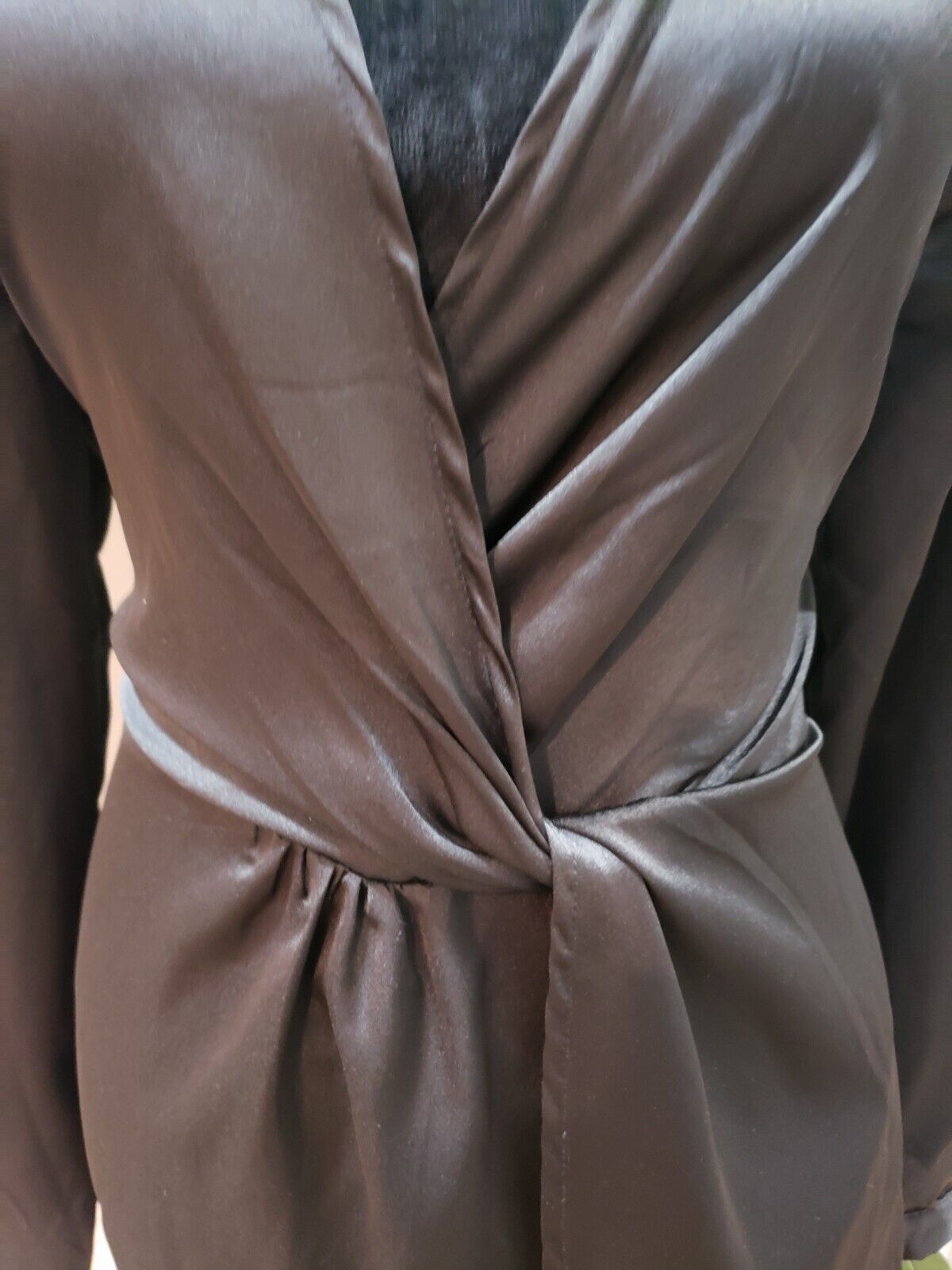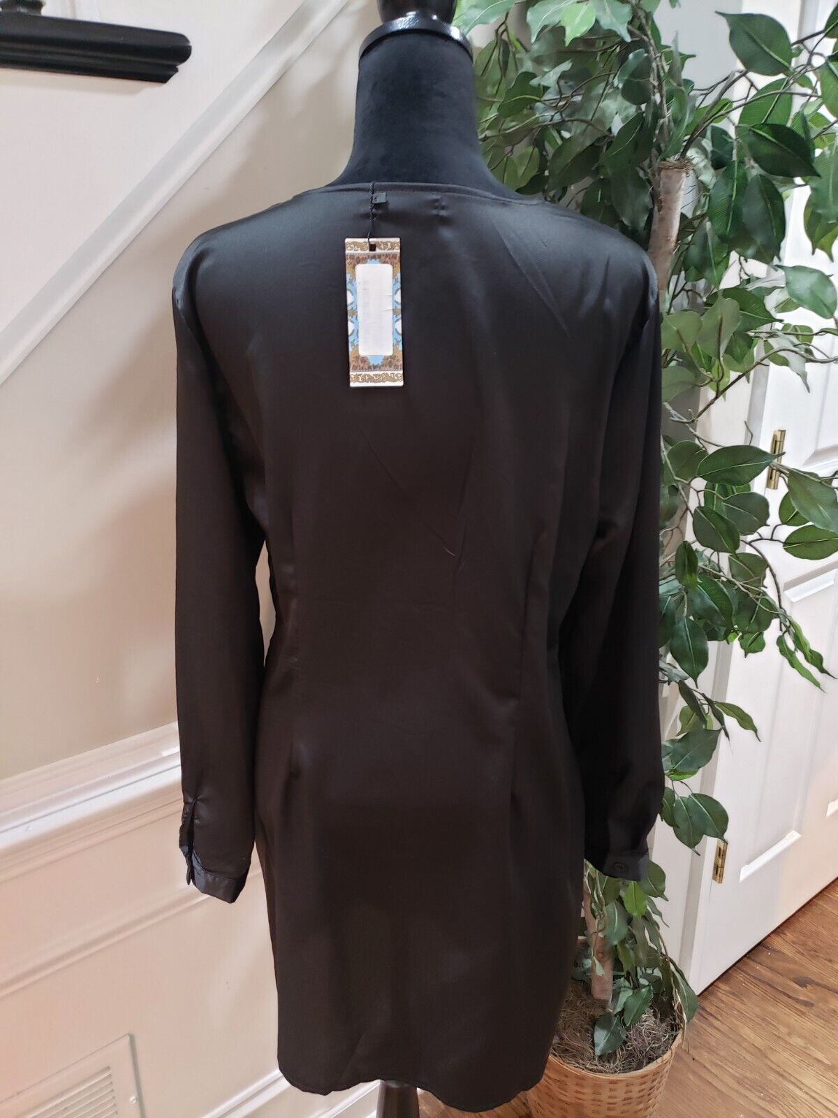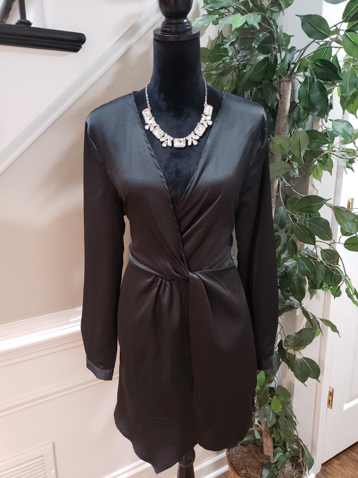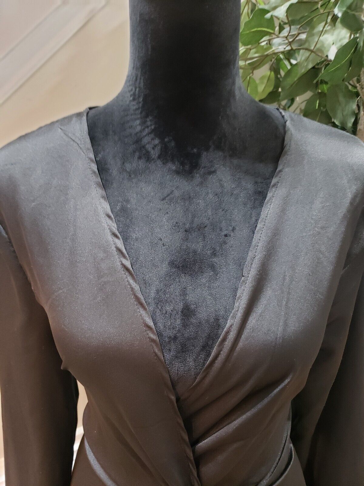 Boohoo Womens Black Solid Polyester V-Neck Long Sleeve Knee Length Dress Size 12.