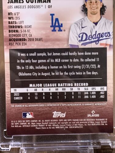 2023 Topps Stadium Club - James Outman - On Card Rookie Auto DODGERS