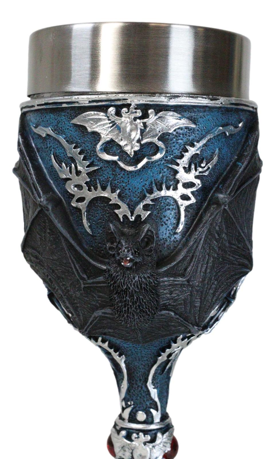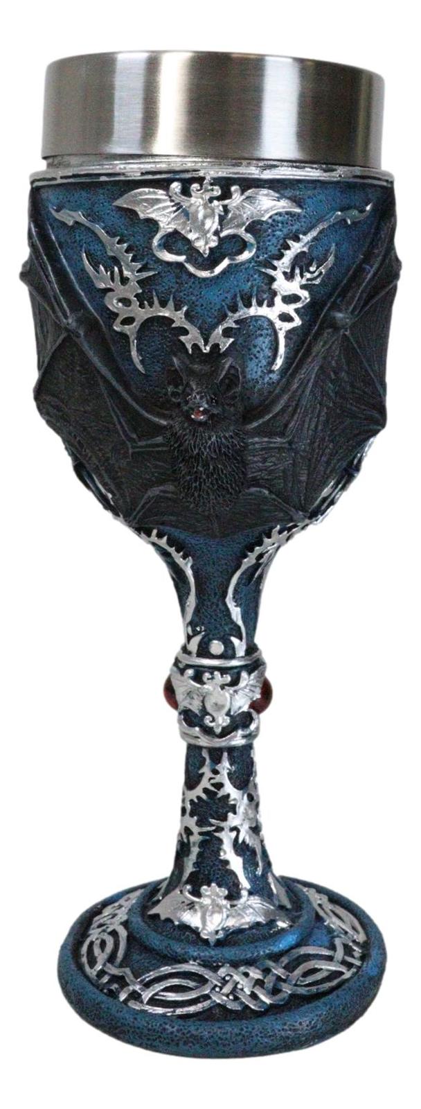 Vampire Flying Bat Blue With Silver Knotwork Scroll Patterns Wine Goblet Chalice