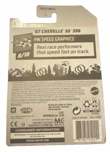 Introducing a brand new 2021 Hot Wheels #183 HW Speed Graphics '67 Chevelle SS 396 Blue. This diecast car is a perfect addition to any collection. It comes in an unopened box and is recommended for children 3 years and older. The car is a 1:64 scale model of a 1967 Chevrolet Chevelle SS, featuring the iconic blue color and intricate details.
