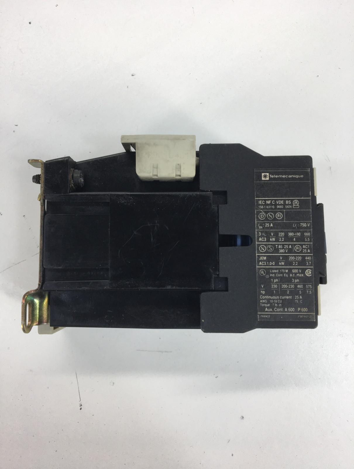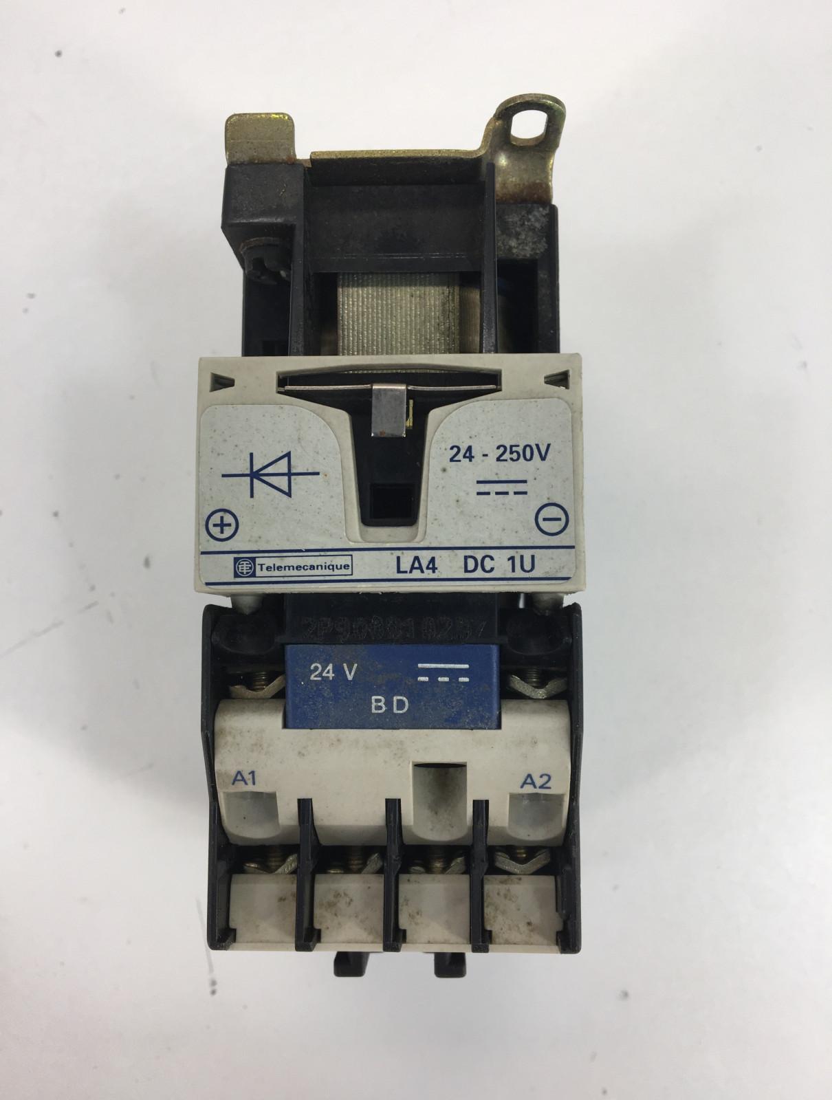 Telemecanique LP1D0901 24V Contactor 24VDC Coil 600VAC 25Amp W/LA4DC1U Aux.