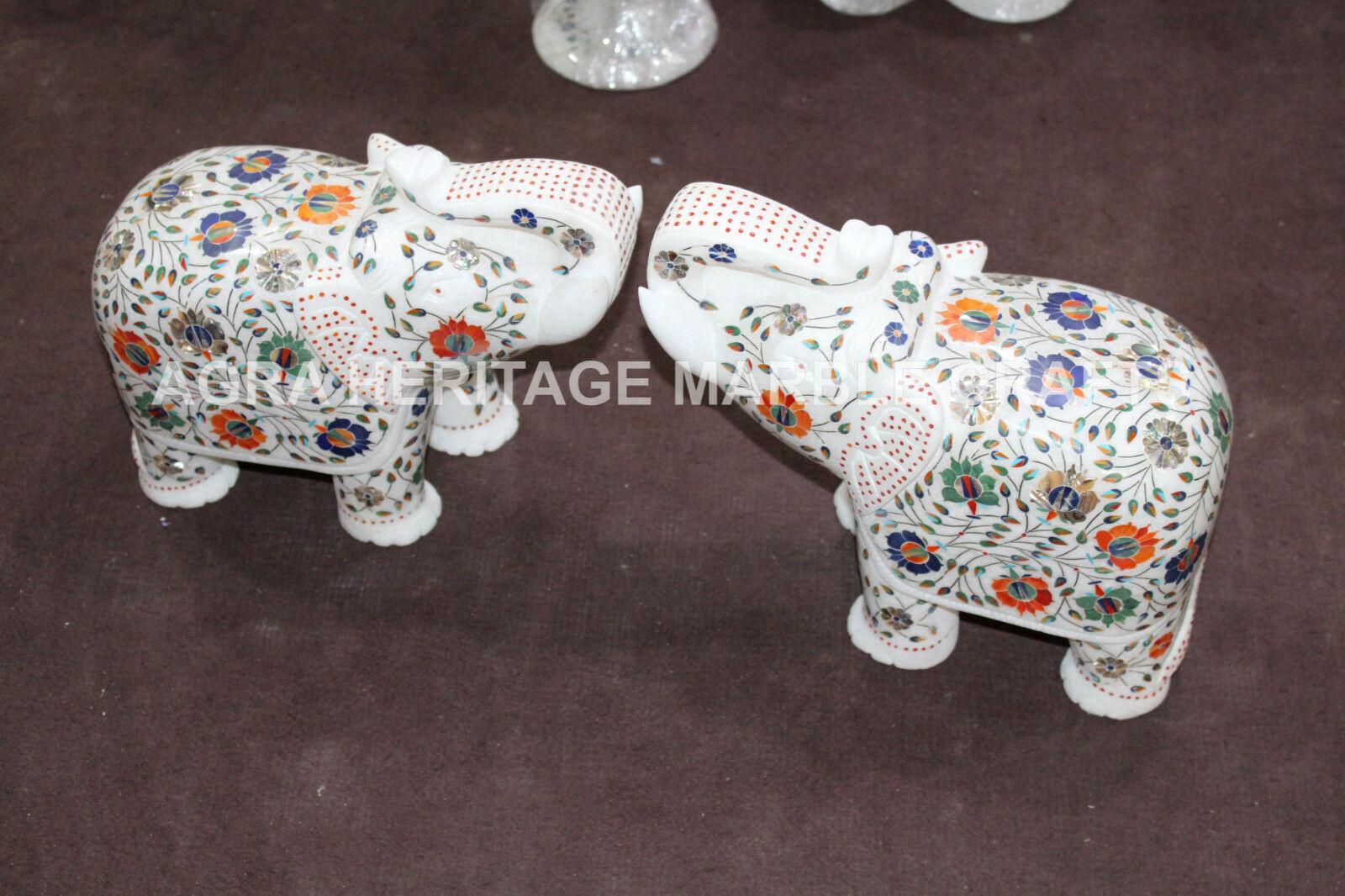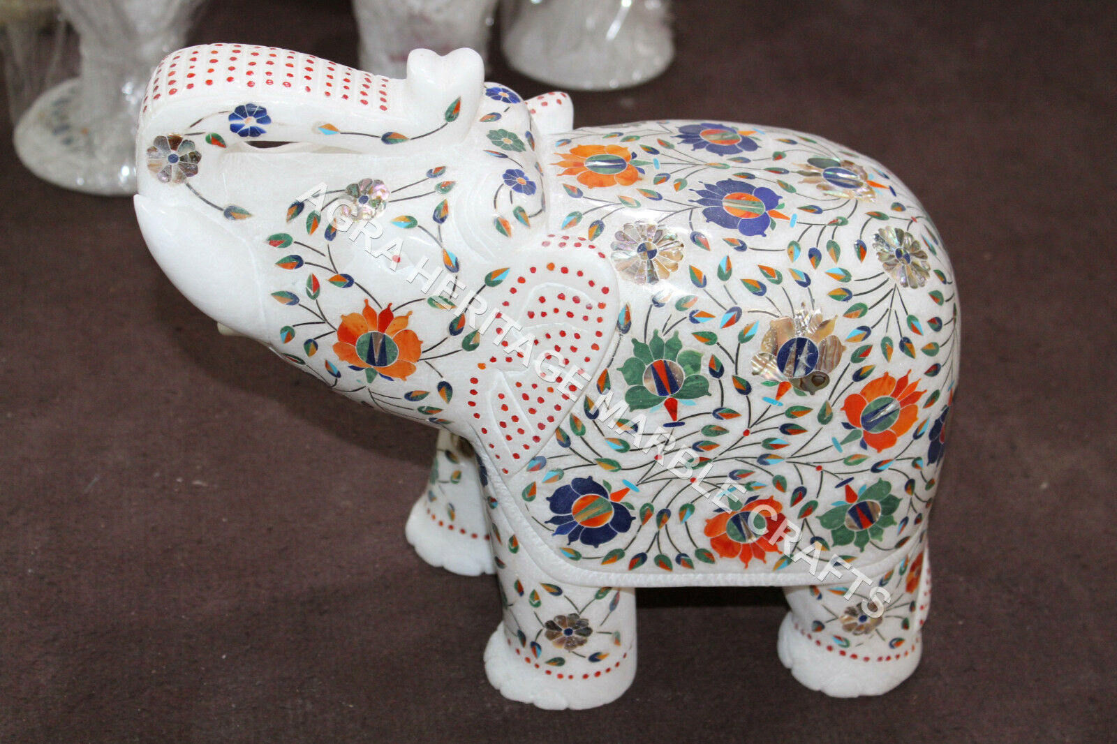12" moderner Marmor-Stein-Elefant zum Verkauf, Multi-Inlay,... added to cart.