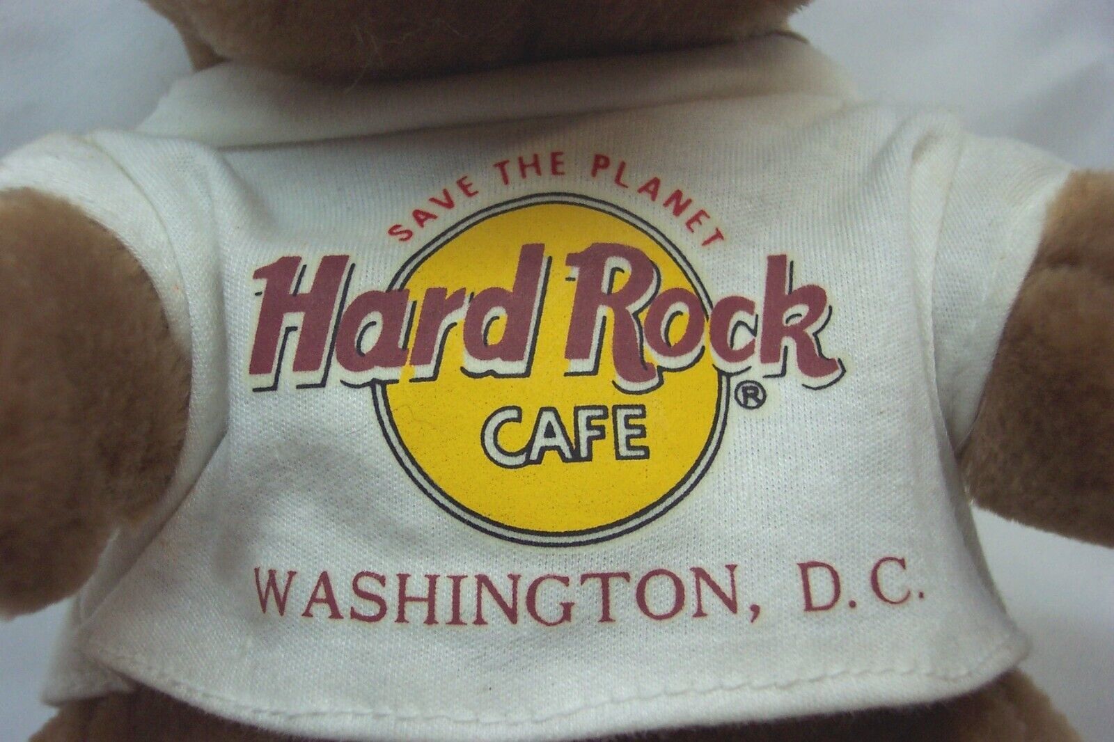 This is a VINTAGE Hard Rock Cafe WASHINGTON D.C. BROWN TEDDY BEAR Plush Stuffed Animal Toy. It is 8 1/2 inches tall in sitting position. It is in Great Condition. It is CLEAN. There are No Stains, Tears or Defects. Combine auctions to save on shipping. Please contact me if you need to make other payment arrangements. EAG