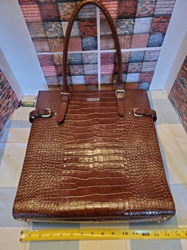 KATE SPADE TOTE Knightsbridge Croc Embossed Patent Leather Rich Brown Rare