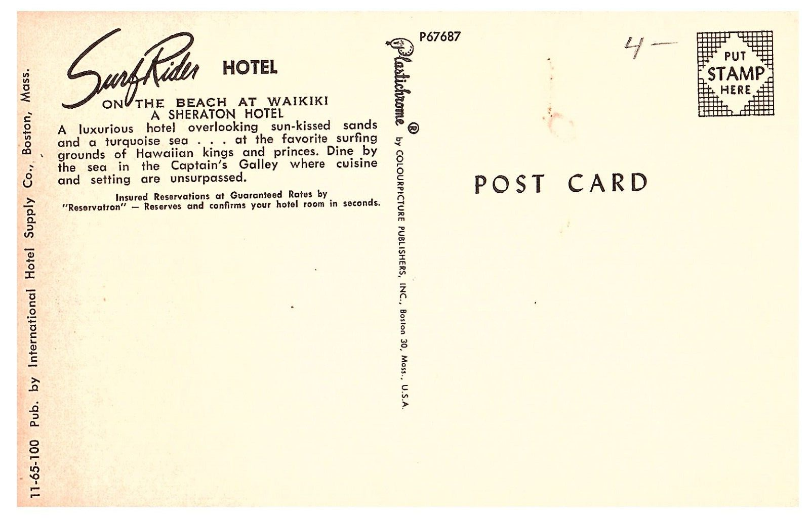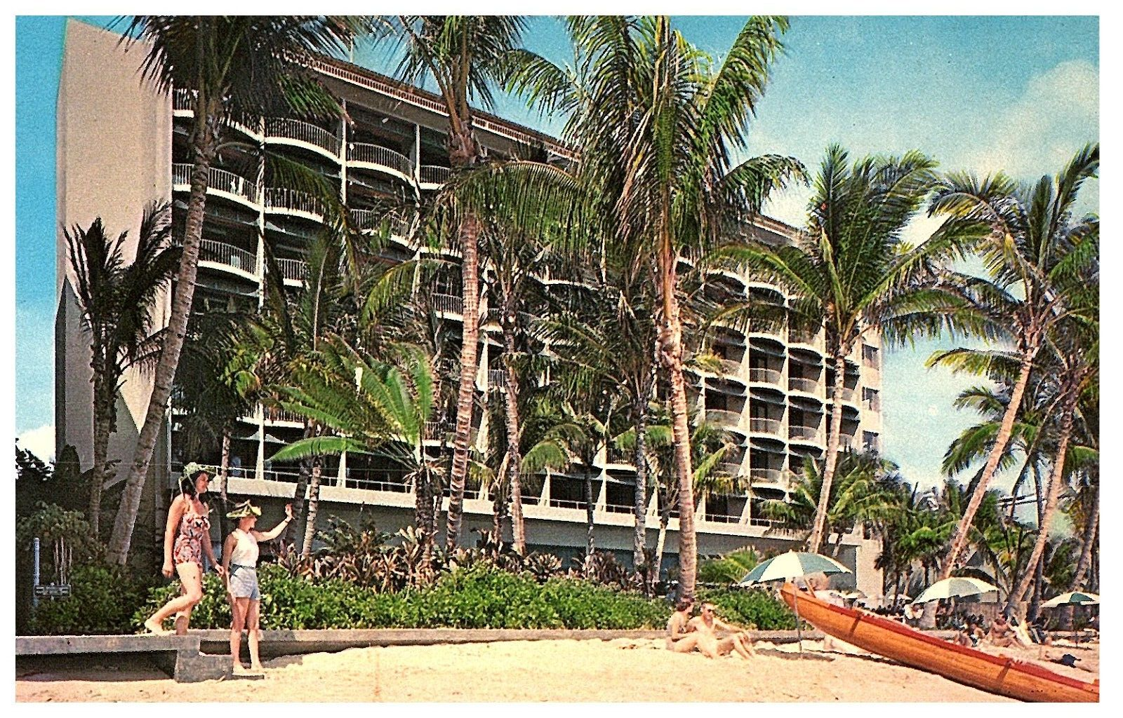 Surfrider Hotel on the Beach at Waikiki Hawaii Sheraton Hotel Postcard