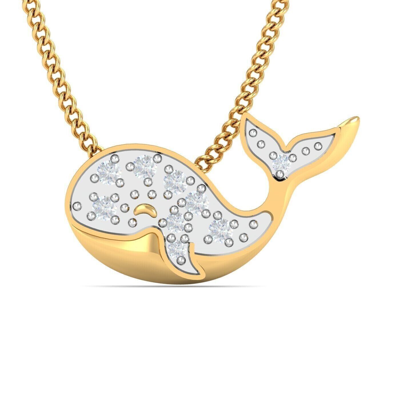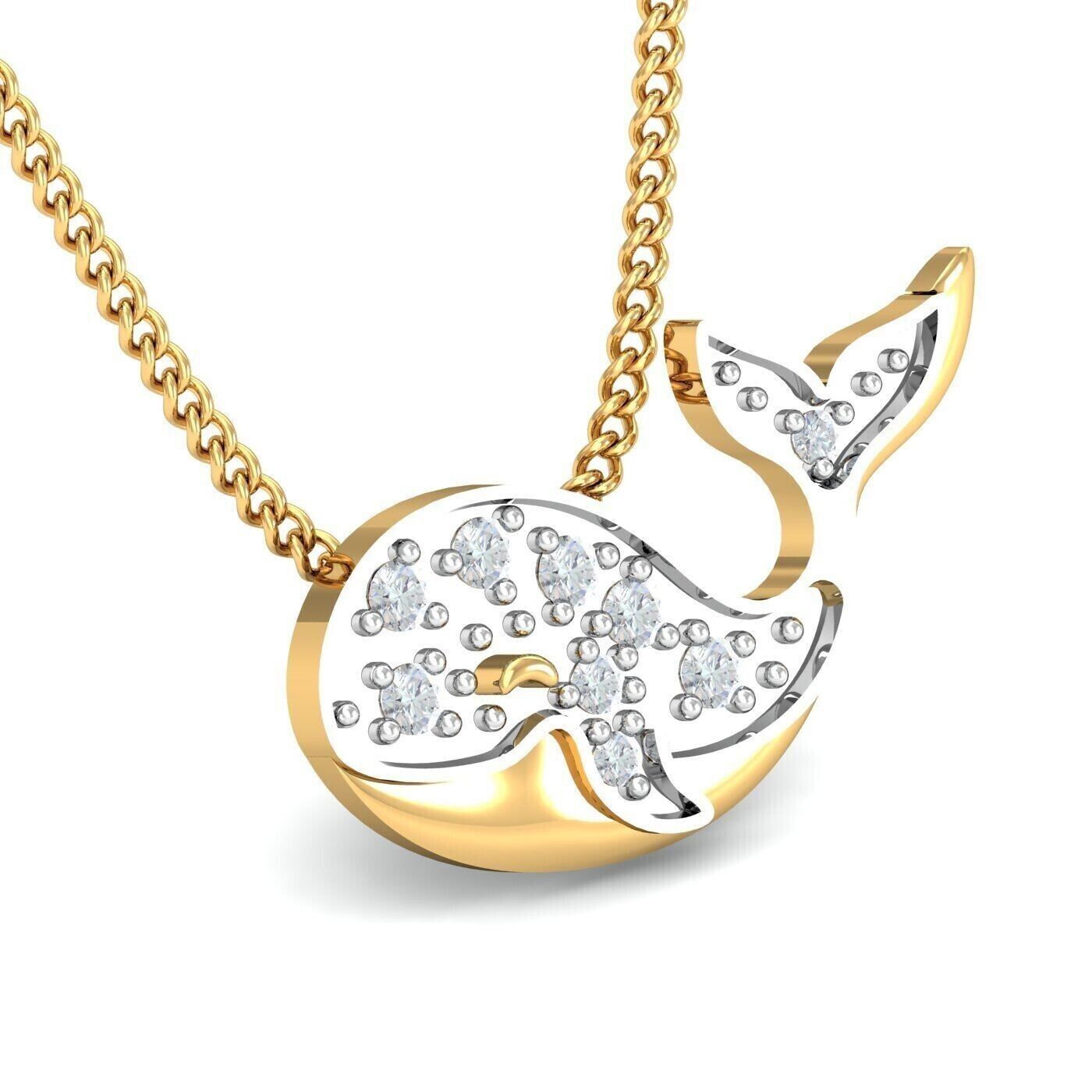 0.30Ct Round Cut Lab Created Diamond Fish Toss Pendant 14K Yellow Gold Plated