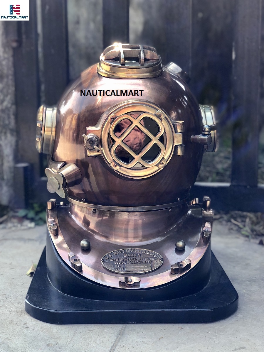 Nauticalmart Antique Full Copper Brass Diving Helmet Divers Helmet Us Navy Mark V