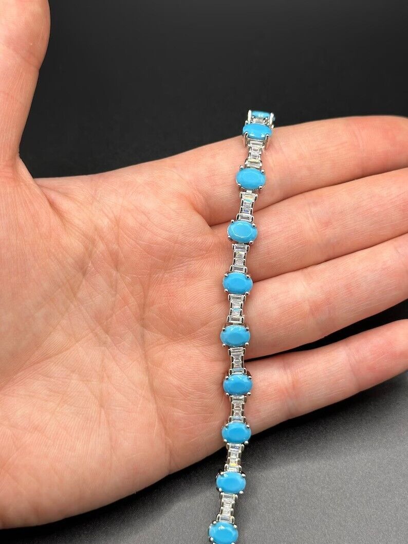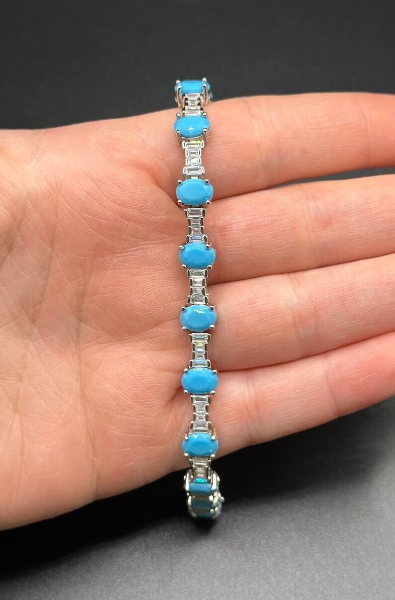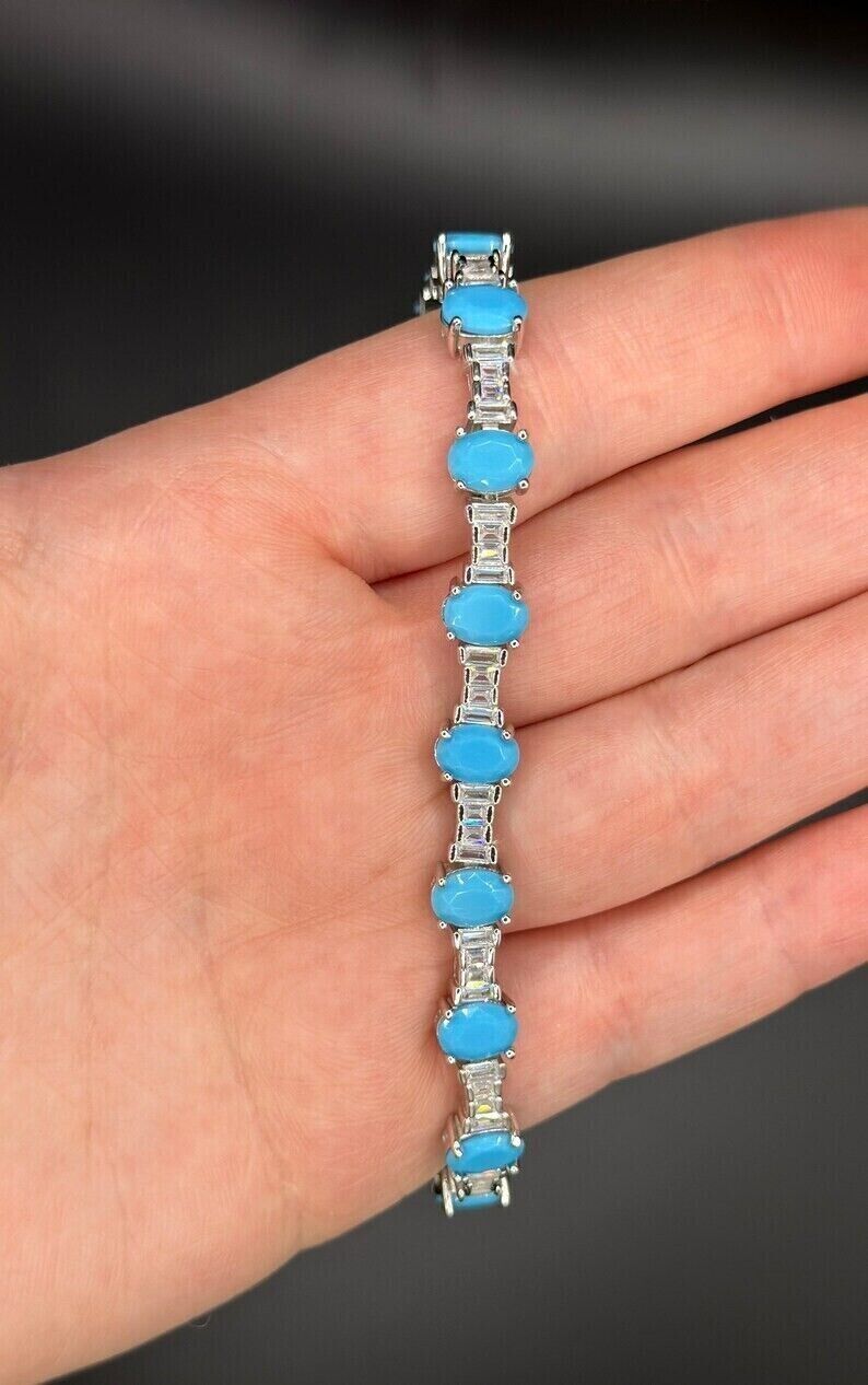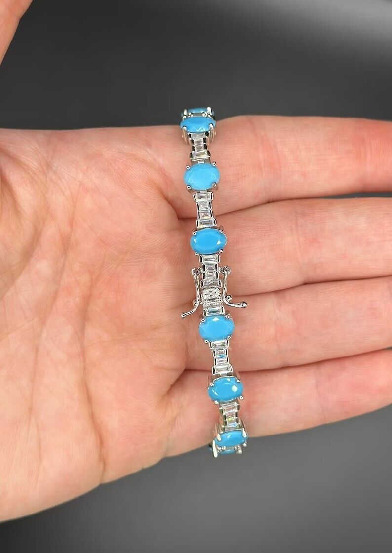 5Ct Oval Cut Lab Created Turquoise Women's Tennis Bracelet 14K White Gold Plated