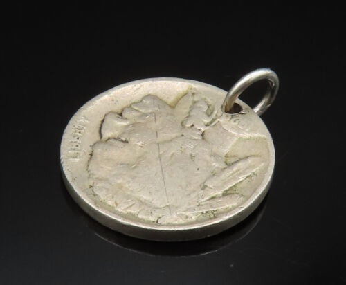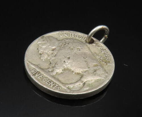 925 Silver - Vintage Indian Head Five Cents Buffalo Coin Pendant - PT20539