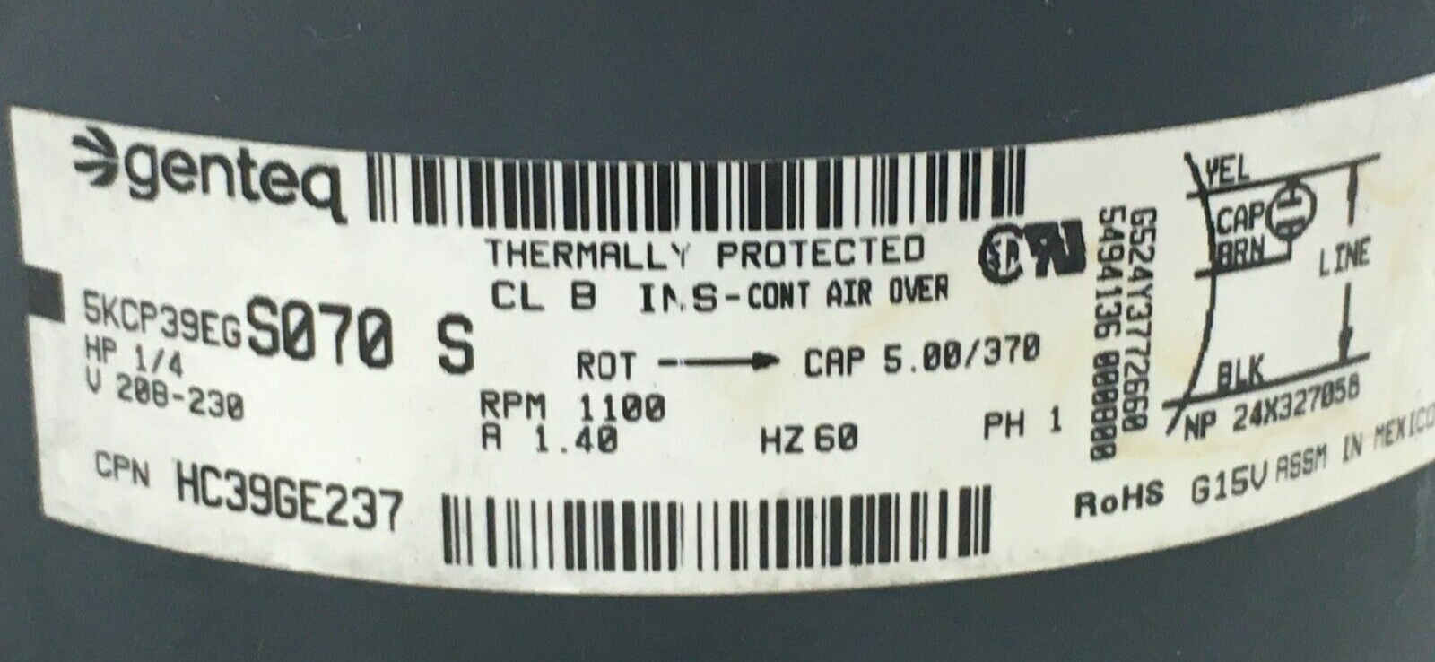 This is GE 5KCP39EGS070S Carrier HC39GE237 Condenser Fan Motor 1/4 HP 208/230V 1100RPM used part.