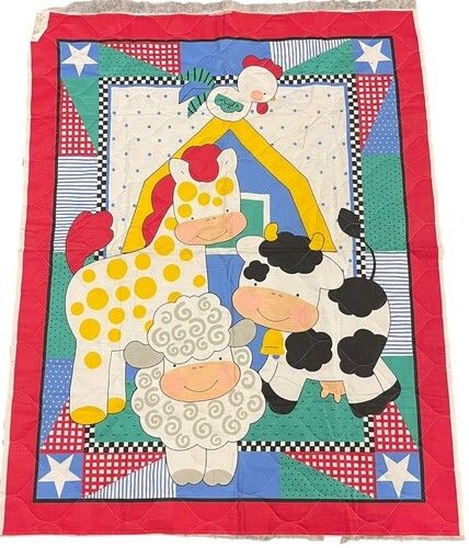 35.5" X 44" Panel Barnyard Blues Farm Animals Kids Cotton Fabric Panel D368.68