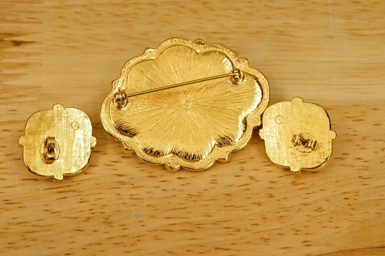 Costume Jewelry AVON Victorian Spring Faux Pearl Brooch Pin Pierced Earrings Set